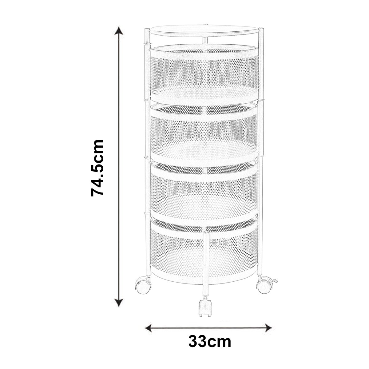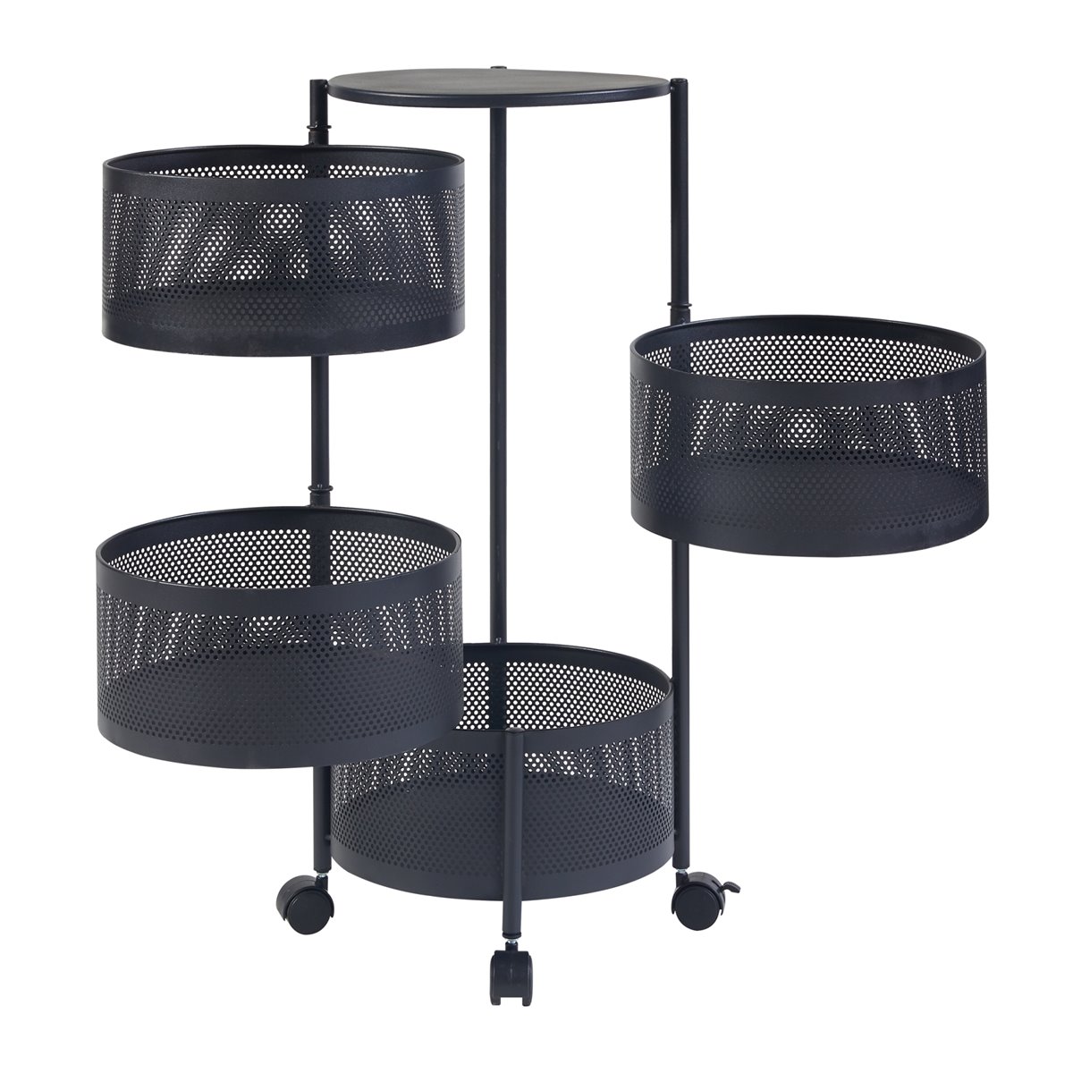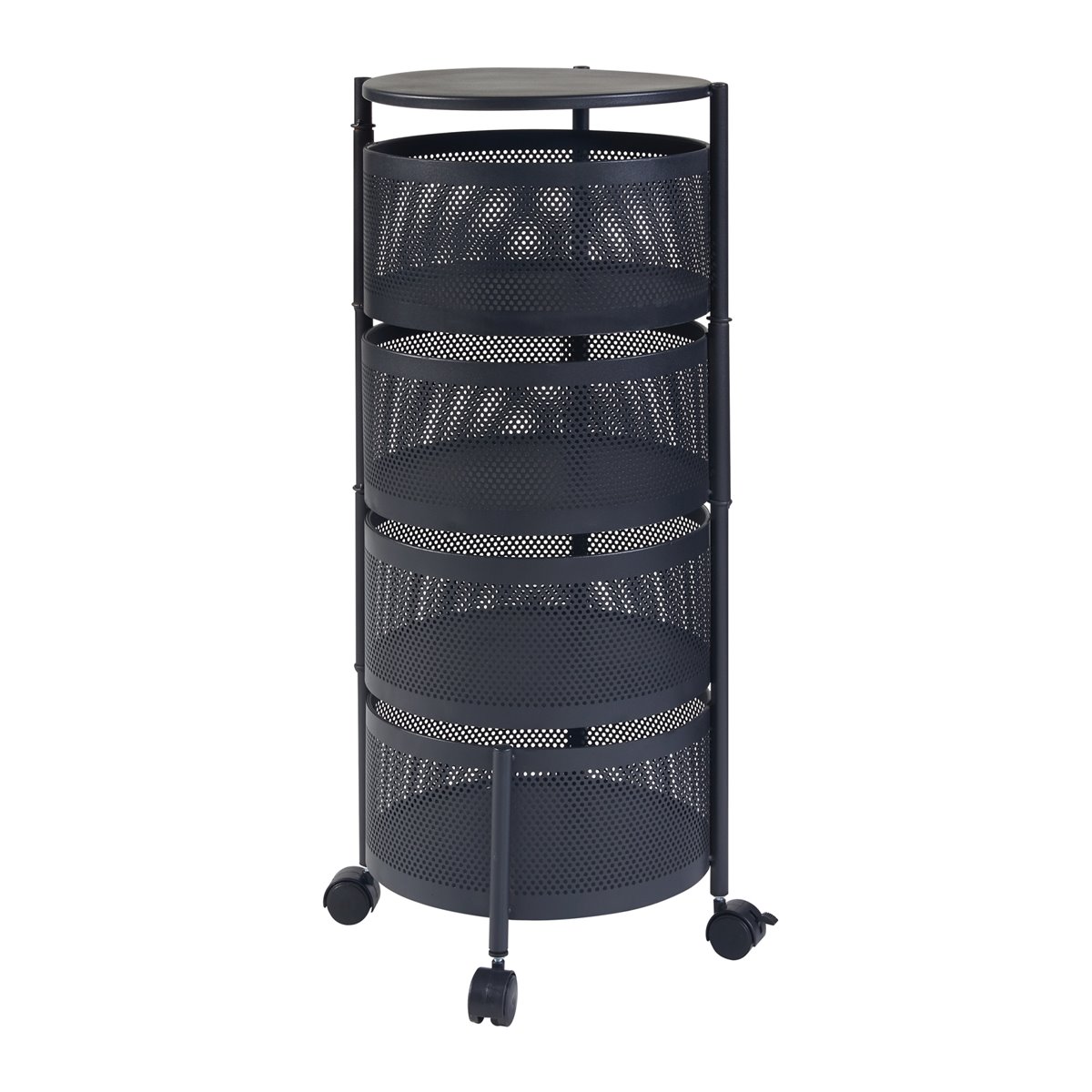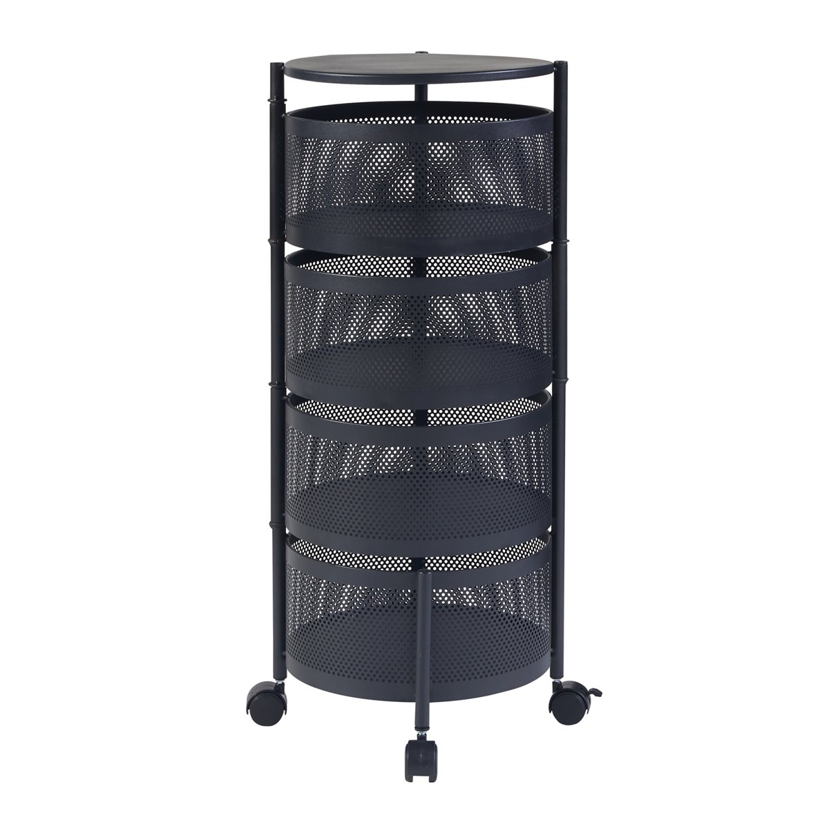 Con cuatro amplias cestas redondas, este carro ofrece la solución perfecta para organizar vajilla, bebidas, e incluso las verduras que siempre quieres tener a mano. Los tres estantes superiores son girables, no sólo podrás alcanzar todos los objetos sin esfuerzo, sino también guardarlos de forma rápida y práctica.