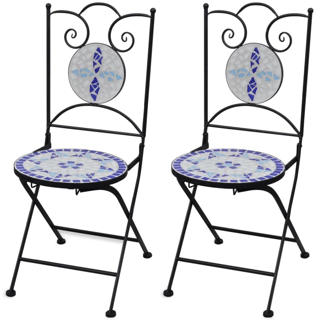 Clicnbuy le ofrece : Este conjunto de sillas de mosaico será un aporte decorativo para tu jardin, patio o balcón. Será un placer tomar una copa con tus amigos sentados en estas sillas. Gracias a una estructura de hierro fuerte con recubrimiento en polvo, este conjunto es robusto y duradero. Debido al asiento cerámica impermeable , estas sillas son fáciles de limpiar. La entrega incluye 2 sillas. Ten en cuenta que estas sillas no son aptas dejarlas afuera con tiempo frio.