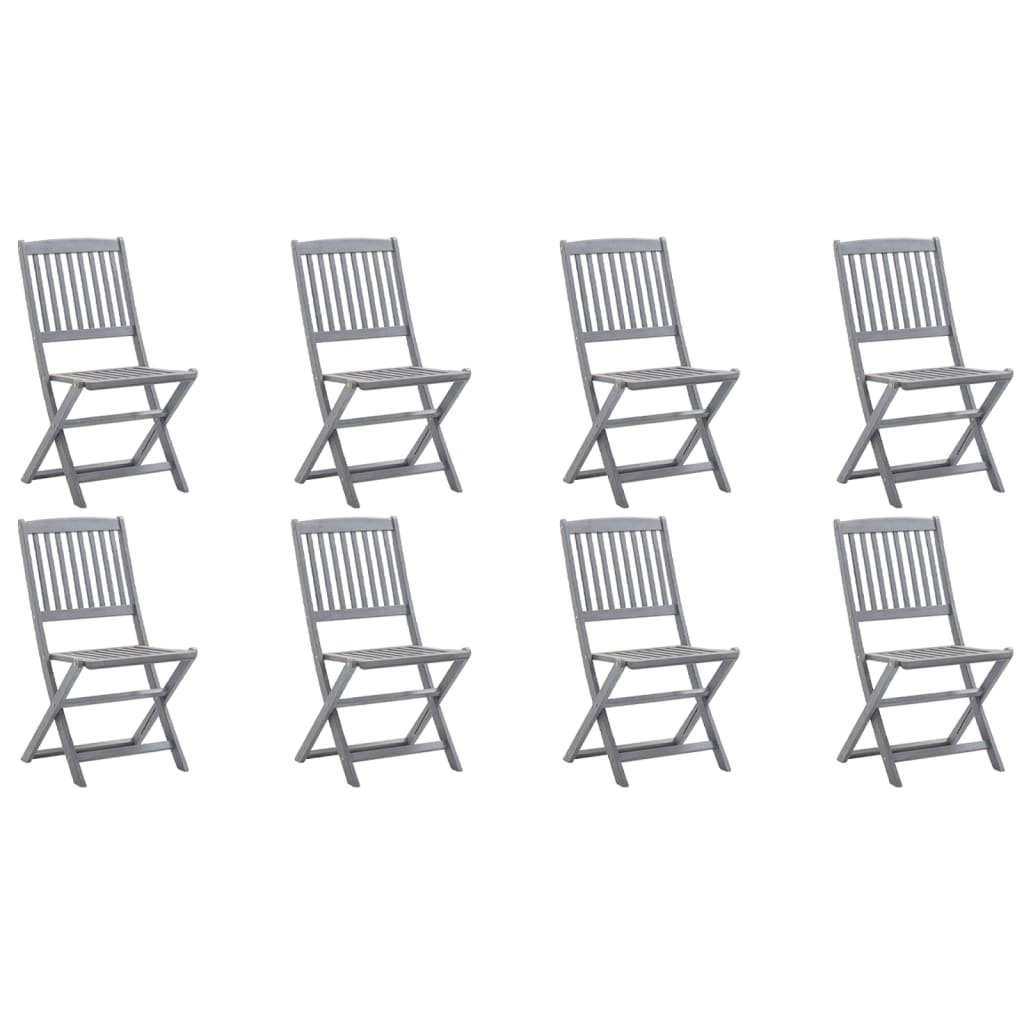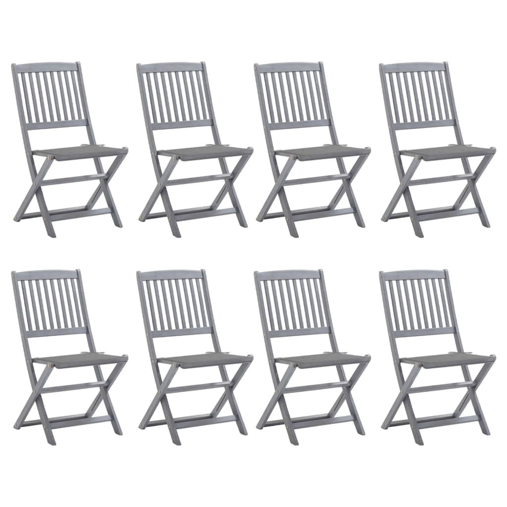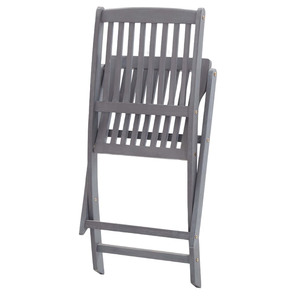 Clicnbuy le ofrece : Este moderno juego de sillas de comedor de madera con cojines da un toque de estilo natural al jardin, la terraza o el patio. Este juego de sillas plegables es una gran opción para comer. Estas sillas de comedor están hechas de madera maciza de acacia, una madera dura tropical, por lo que son resistentes a la intemperie y muy duraderas. La madera maciza de acacia posee la fuerza para soportar pesos y para aguantar el desgaste y el paso del tiempo. La superficie en gris deslavado se limpia fácilmente con un paño húmedo. Las sillas se pueden plegar para ahorrar espacio cuando no se usen. Además, los cojines incluidos proporcionan un plus de comodidad mientras descansas o comes. Cada cojin cuenta con dos juegos de cuerdas para fijarlo firmemente en la silla. Nota: Para prolongar la vida útil de los muebles de exterior, te recomendamos que los limpies con regularidad y no los dejes al aire libre sin protección innecesariamente.Limpieza: Usa una solución de jabón suaveAlmacenamiento: Si es posible, guarda el producto en un lugar fresco y seco en el interior. Si el producto se almacena al aire libre, protégelo con una funda impermeable. Limpia y seca el exceso de agua o nieve de las superficies planas después de una lluvia o nevada. Permite la ventilación para evitar daños relacionados con la humedad.