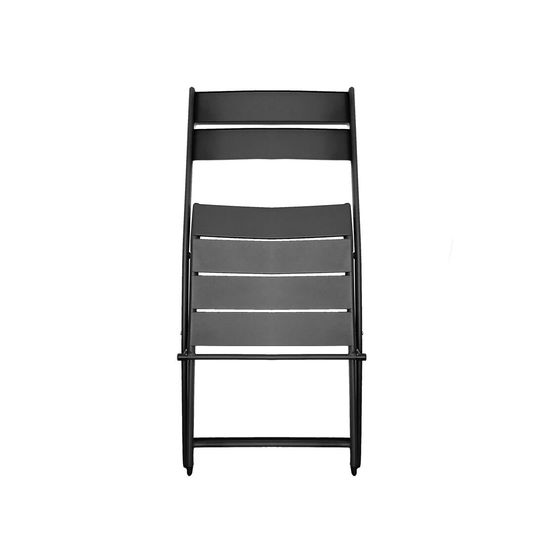 "DISEÑO: Esta silla plegable destaca por su diseño minimalista y funcional, con líneas rectas y una estética sobria que combina bien con cualquier tipo de decoración exterior o interior. El color antracita le otorga una apariencia moderna y discreta, ideal para terrazas, patios o balcones de estilo contemporáneo. Su respaldo bajo con listones aporta un toque clásico y práctico.