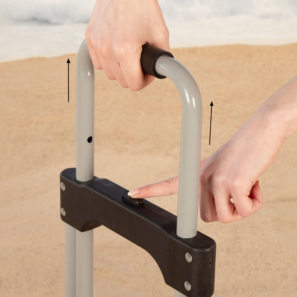 El carro plegable Aktive es la solución ideal para transportar carga de forma cómoda y sin esfuerzo. Su estructura de aluminio lo hace ligero pero resistente, con capacidad para soportar hasta 70 kg de peso. Gracias a su diseño compacto y plegable, ocupa poco espacio cuando no se utiliza. Sus ruedas aseguran estabilidad en terrenos variados, mientras que el asa telescópica regulable permite un manejo más ergonómico. La plataforma reforzada brinda soporte seguro para cualquier tipo de carga. Además, incorpora un cordón elástico para sujetar los objetos y evitar desplazamientos durante el trayecto. Perfecto para llevarlo a la playa, de viaje o para el día a día, este carro de transporte se convertirá en un imprescindible en tu rutina.