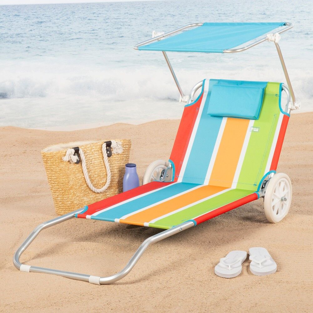 - Máximo confort: la tumbona playa te brinda una superficie de descanso equipada con cojín acolchado y toldo removible para mayor comodidad
