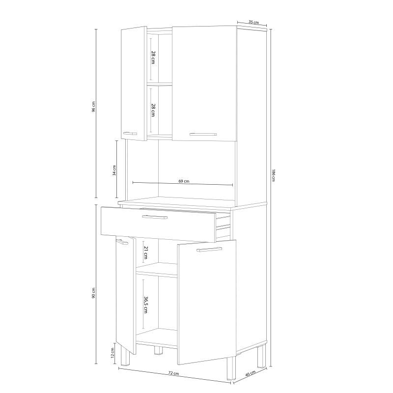 - Medidas hueco microondas: 34 cm (altura) x 69 cm (ancho) x 35 cm (profundo)
