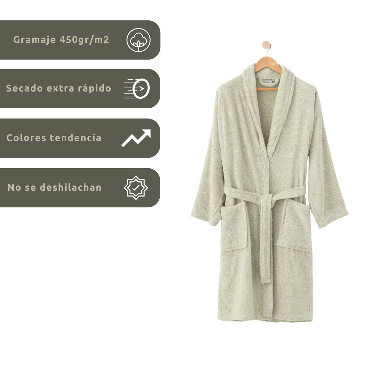 Donegal Collections presenta la nueva línea de Albornoces de Algodón 100% de 450gr/m2. Nuestro producto es sencillo, elegante, cómodo y práctico, y además, cuenta con la máxima calidad. Con nuestro albornoz conseguirás que salir de la ducha o de la bañera sea uno de los momentos más agradables del día por su suavidad, textura, ligereza y rápido secado del cuerpo. La composición que hemos utilizado para la confección de esta prenda de baño es 100% Algodón Peinado con acabado en Rizo. El gramaje que presenta el mismo es de 450Gr/m2. Su textura mullida hará que te aporte el confort necesario. Las tallas disponibles son: Talla S, Talla M, Talla L y Talla XL. Y también puedes encontrar nuestro albornoz en los colores de tendencia. Desde Donegal Collections agradecemos la confianza depositada en nuestro producto y en nuestra empresa.