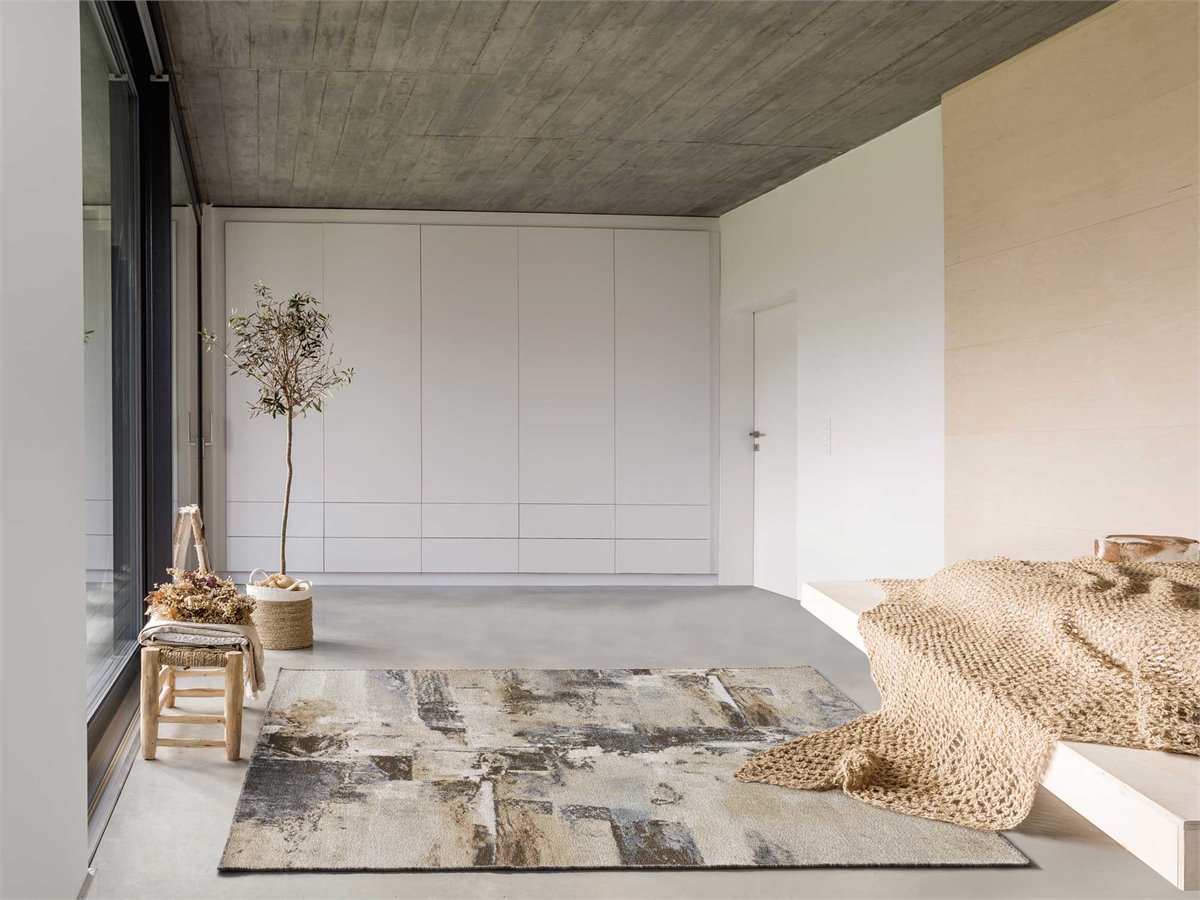 AYDIN una combinación de diseño y colores neutros para tu hogar. Gracias a su diseño abstracto, esta alfombra moderna puede integrarse a la perfección en cualquier estancia de la casa, como alfombra de salón por ejemplo. Esta alfombra aportará un toque originalidad y calidez a tu hogar.