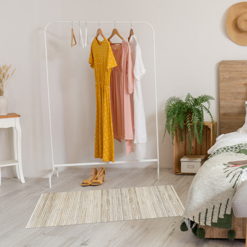Alfombra de bambú natural (láminas de 16mm) efecto tarima con acabados Premium. Ideal para todo tipo de estancias: pasillos, salón, dormitorio... Resiste a la humedad, así que podrás colocarla también en el baño. Alfombra antideslizante, gracias a su dorso esponjoso de Goma Eva. Fácil mantenimiento: podrás aspirarla y limpiarla con agua y jabón neutro. Acabados Premium: barnizado y sin ribete.