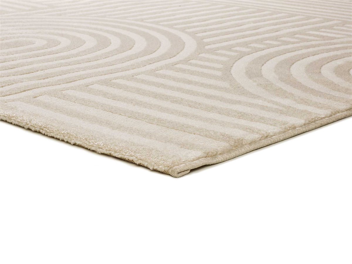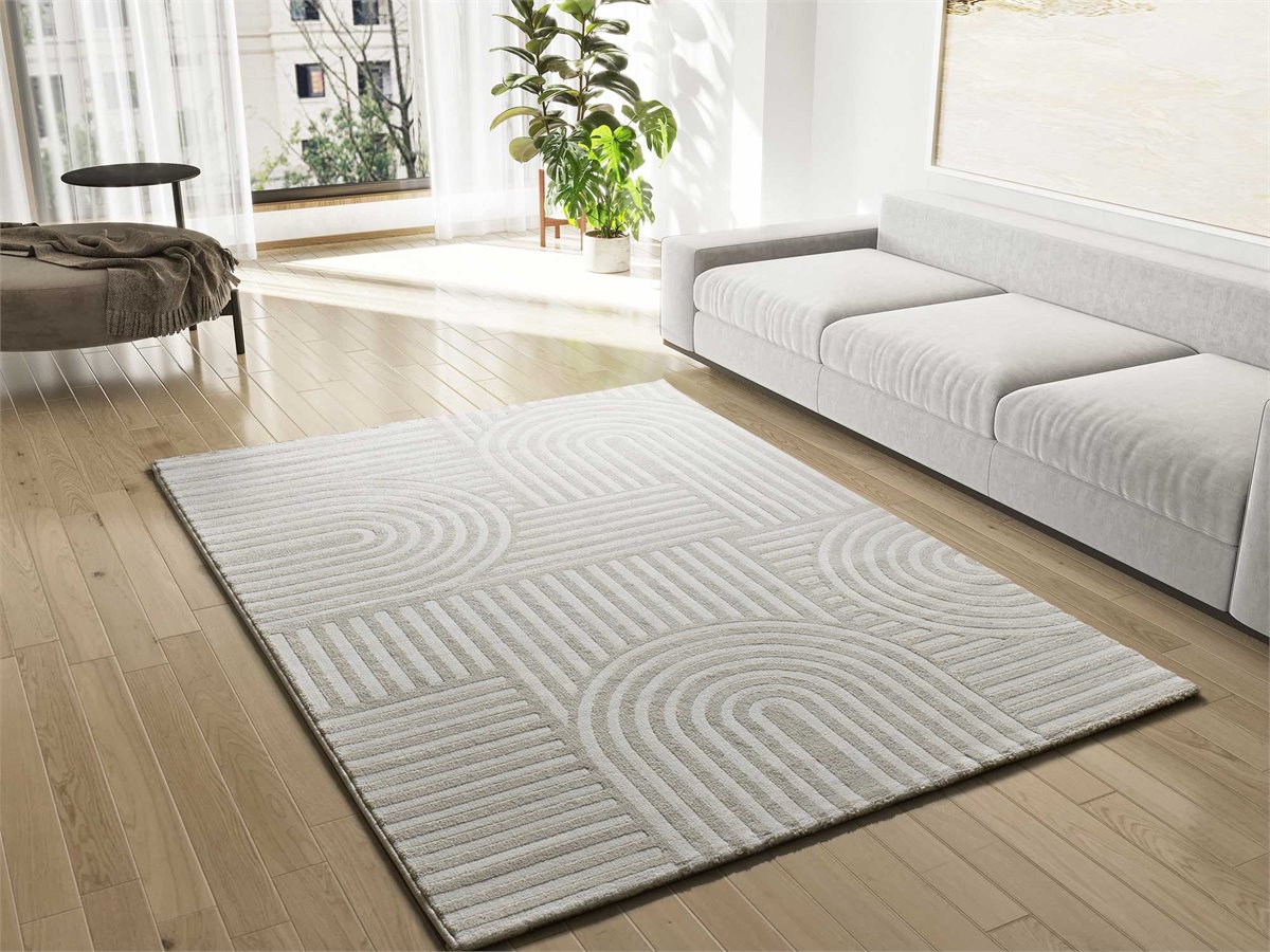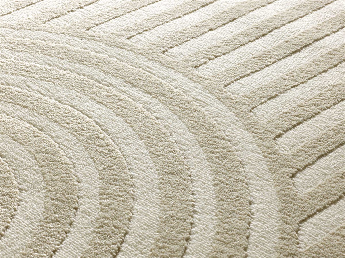 La alfombra Zen está diseñada para crear sensaciones. Una alfombra de pelo corto en tonos blancos y cremas con un juego te texturas y relieves que la hacen única.. Su diseño la convierte en una alfombra moderna y elegante, perfecta como alfombra de salón o dormitorio. Alfombra fabricada en España con método de incorporado a doble cara y con una composición principal de: 70% polipropileno heat-set frisé, 30% poliéster y yute en el reverso. La densidad del entramado de la alfombra es de 256.000 puntos/m2 y su pelo tiene una longitud de 10 mm. Certificado Oeko-Tex standard 100