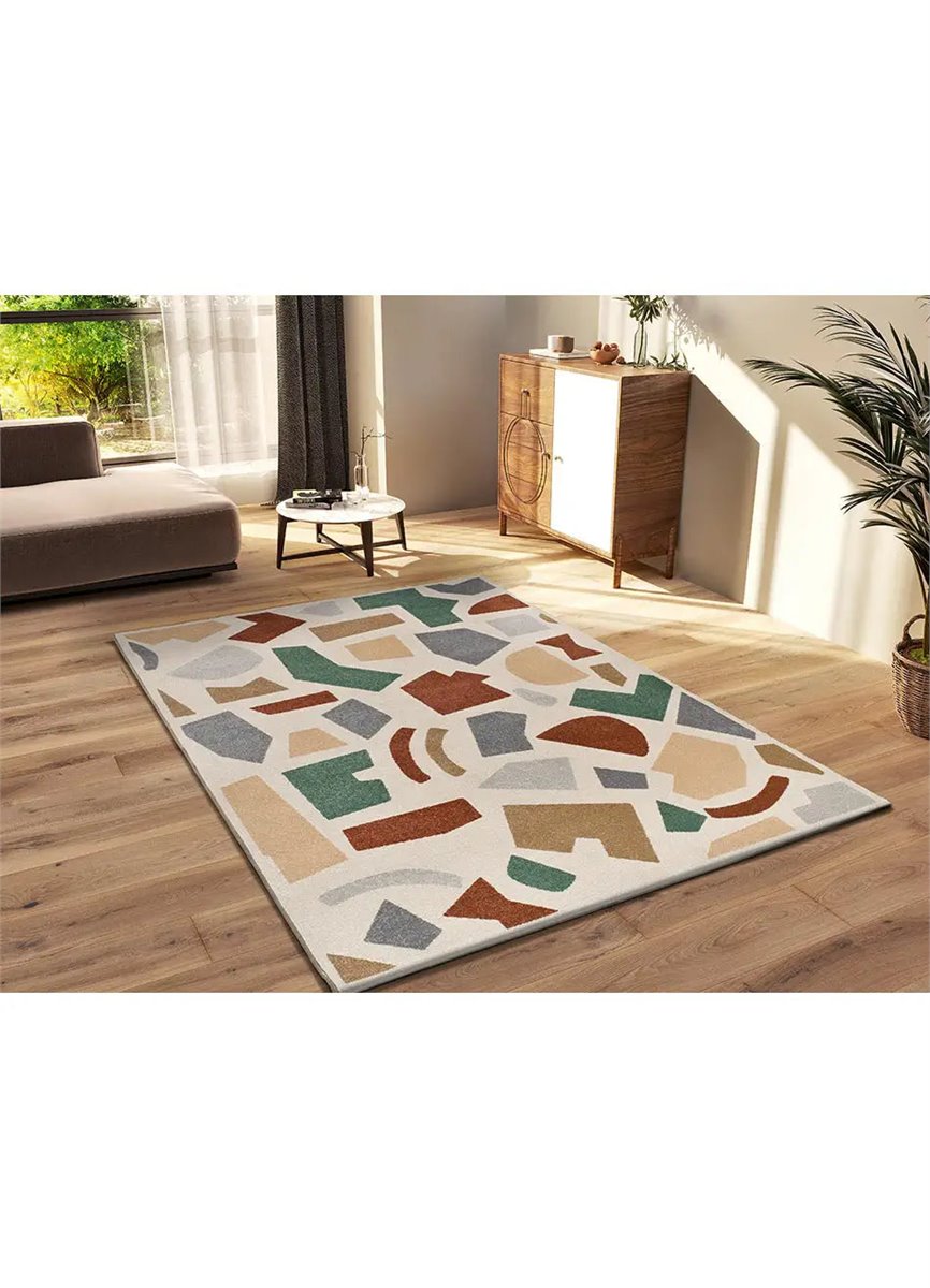 Dale color a tu hogar con la alfombra geométrica BERUTI, una alfombra moderna en tonos beige, caldera y verde. Ideal como alfombra para salón por su diseño geométrico y materiales de alta calidad. Suave, resistente y perfecta para cualquier espacio. ¡Consíguela ahora!