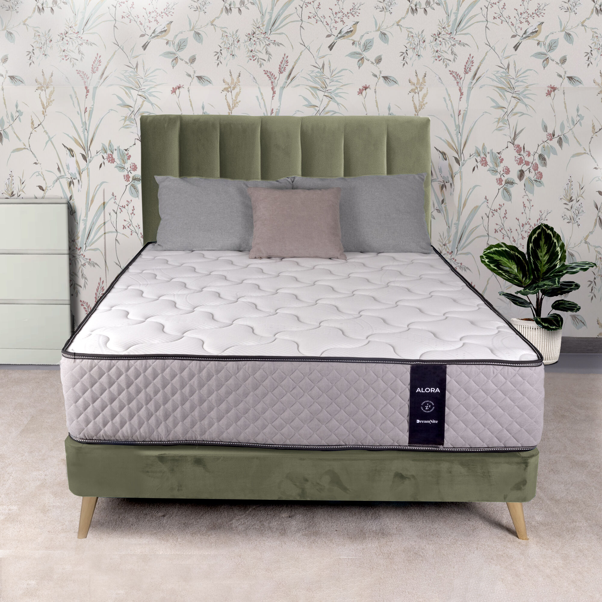 Colchón viscoelástico Alora. Colchón reversible con dos caras diferenciadas, diseñadas estratégicamente con sistemas multicapas independientes para adaptarse a cada estación y ofrecer el mejor confort en cada una de ellas. Con una altura de +-/ 29 cm y firmeza Media/Alta. Este modelo ofrece una acogida progresiva y una independencia de lechos excelente. Núcleo:Su núcleo Dream-HR está compuesto por espumación de alta densidad, y es el soporte perfecto para lograr una gran comodidad. Gracias a su gran resilencia, el colchón recupera su forma después de cada uso, dando como resultado una gran durabilidad.Sus capas TST, aportan individualidad a cada una de las caras del colchón, permitiendo que cada una de sus propiedades sean optimizadas.Cara Verano: Tejido 3D AirMax, compuesta por tejidos entrelazados que permiten una circulación del aire óptima, mejorando la sensación de frescor y aliviando las altas temperaturas del verano. La combinación de las capas Premium-Fiber y ViscoSoft aportan una gran adaptabilidad y soporte al colchón, dando como resultado un confort excelente.Cara Invierno: Acolchado con Tejido Stretch, de tacto suave y sedoso. Este tejido es un material cálido, mejorando la sensación térmica del colchón durante las frías noches de invierno. Su sistema Viscotechnology combina las mejores propiedades de la viscoelástica junto al carbono, ofreciendo un soporte progresivo y optimizado que se adapta a cualquier postura de forma individual y progresiva, mejorando la sensación de confort y dando un soporte adecuado a cada parte del cuerpo.Disfrutarás de un descanso más saludable gracias a sus tejidos hipoalergénicos con certificado Oeko Tex, Textiles de confianza.