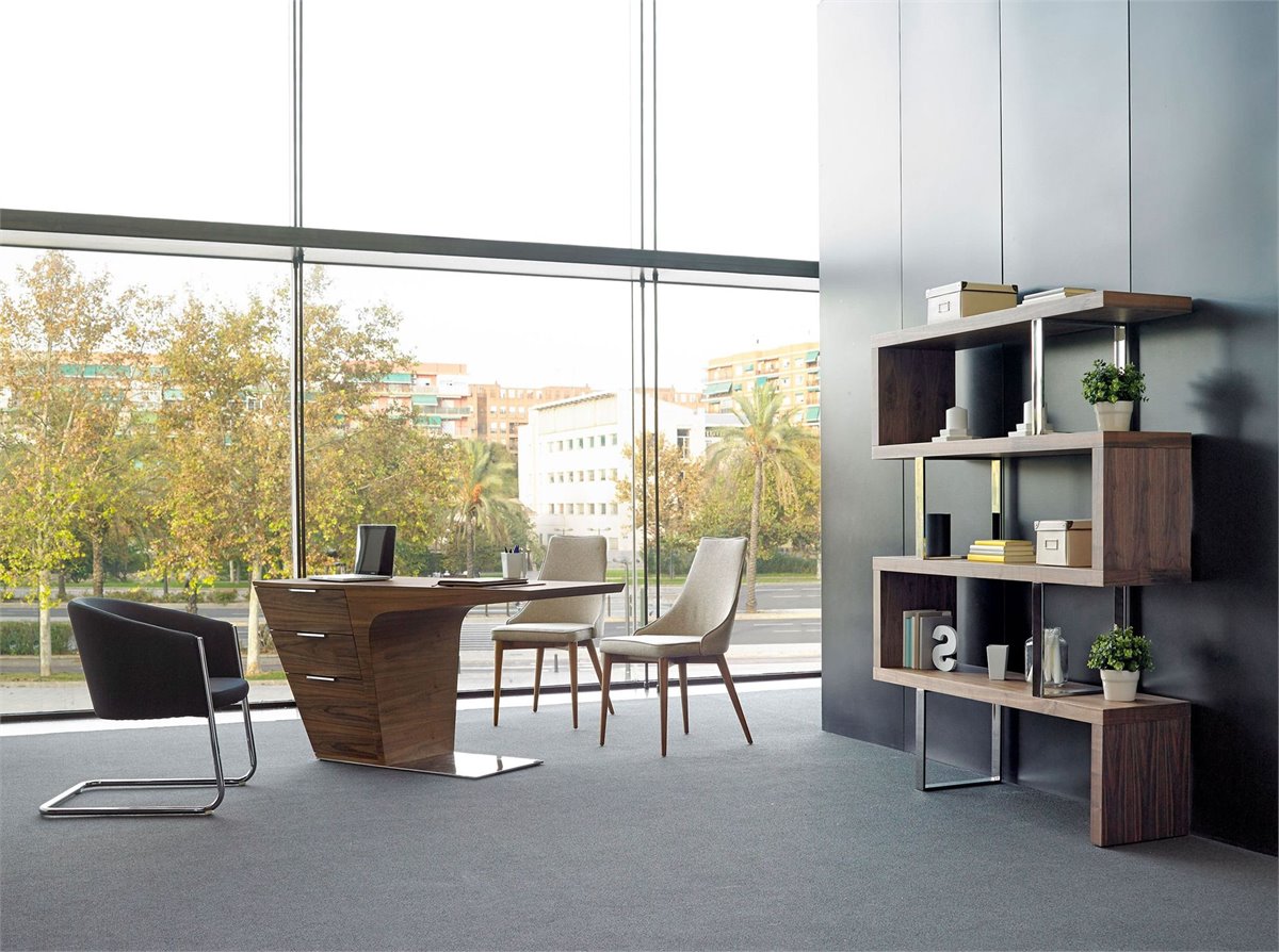 - La original estructura fabricada en madera chapada en nogal natural de 0,5 mm de espesor, es ideal para aportar ese toque de calidez y elegancia que busca para su oficina.