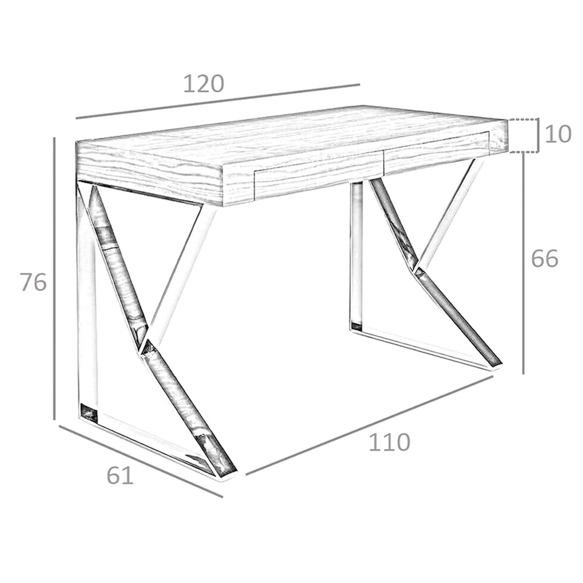 Escritorio de diseño moderno fabricado en madera chapada en nogal natural. El diseño de sus patas de acero inoxidable cromado aportará un toque sofisticado y exclusivo a su estancia.