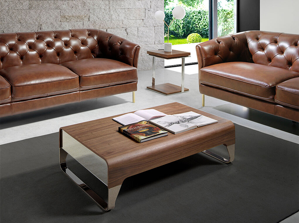 Mesa centro rectangular nogal y acero cromado modelo 2001 Angel Cerdá S.L.