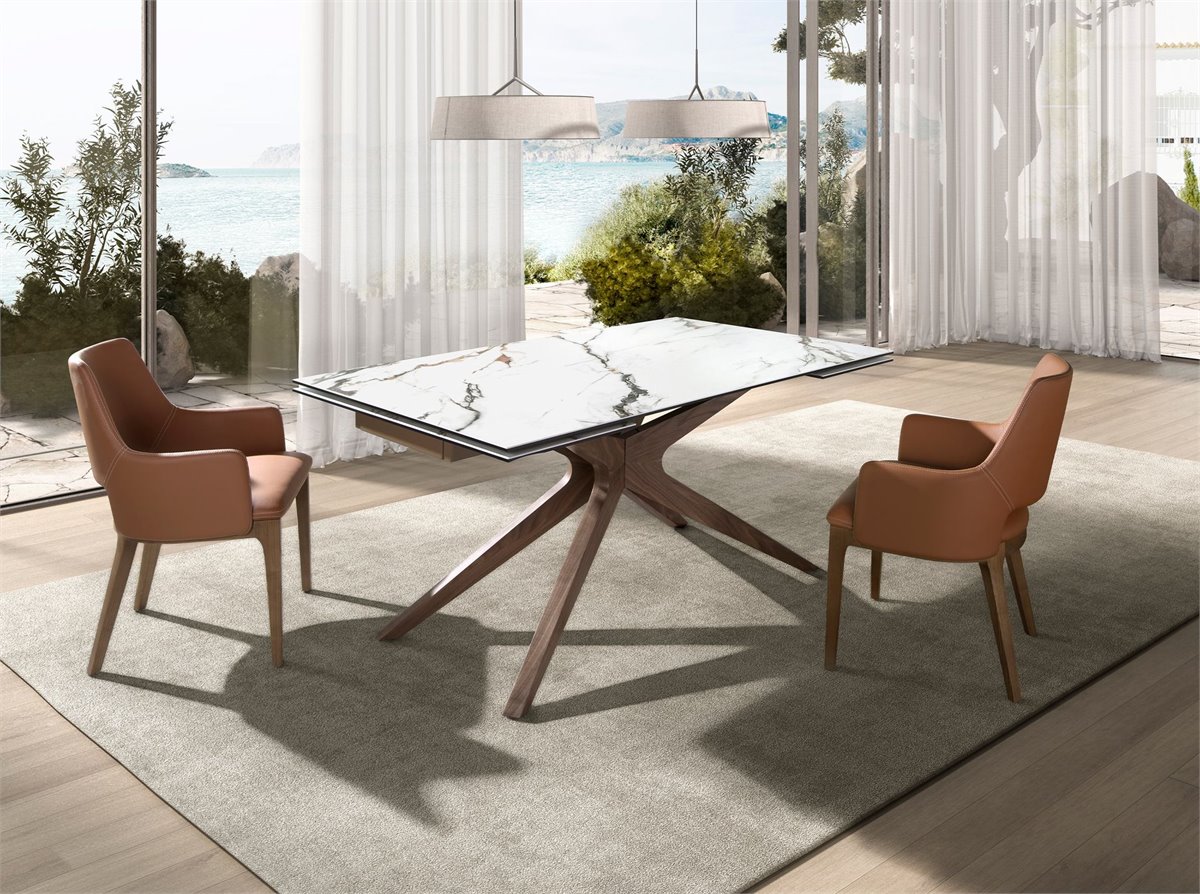 Mesa comedor extensible rectangular mármol porcelánico y nogal modelo 1157 Angel Cerdá S.L.