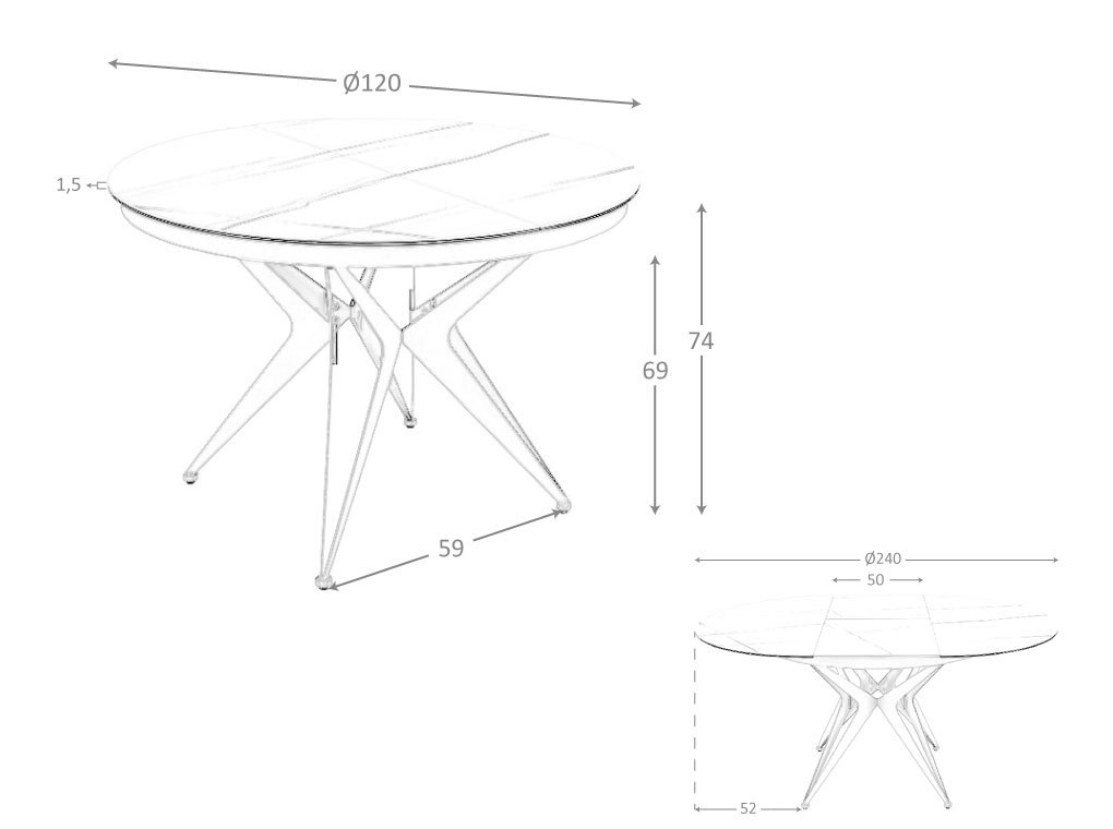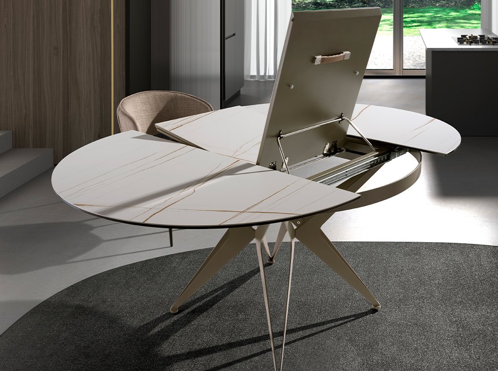 Mesa comedor extensible redonda mármol porcelánico y acero gris modelo 1119 Angel Cerdá S.L.