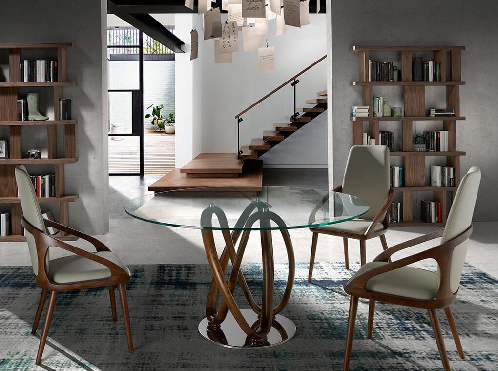 Mesa comedor redonda cristal templado y nogal modelo 1021-Ø130 Angel Cerdá S.L.