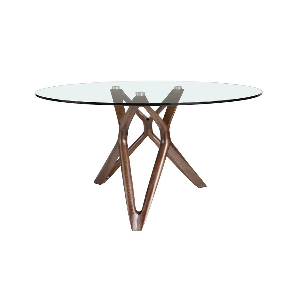 Mesa comedor redonda cristal templado y nogal modelo 1108-Ø130 Angel Cerdá S.L.