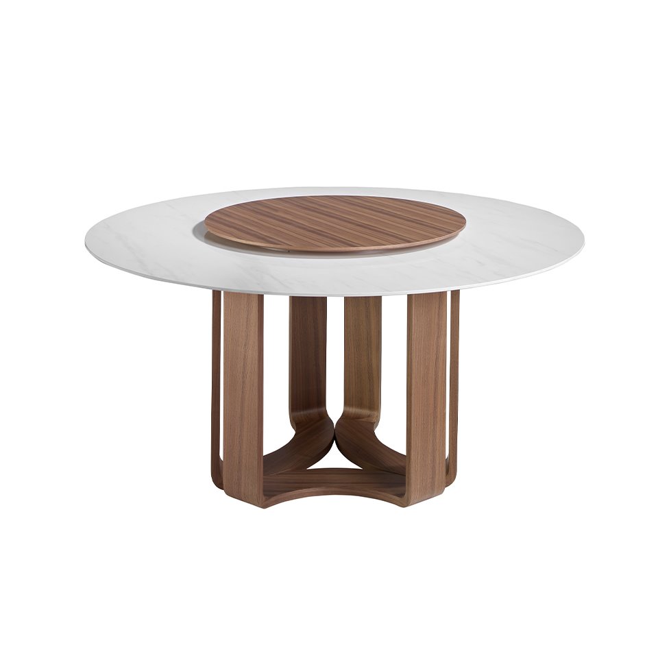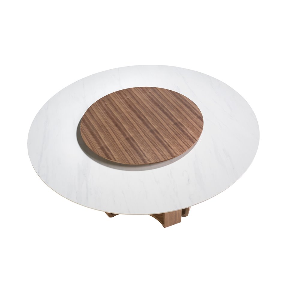 Mesa comedor redonda mármol porcelánico y nogal modelo 1137 Angel Cerdá S.L.
