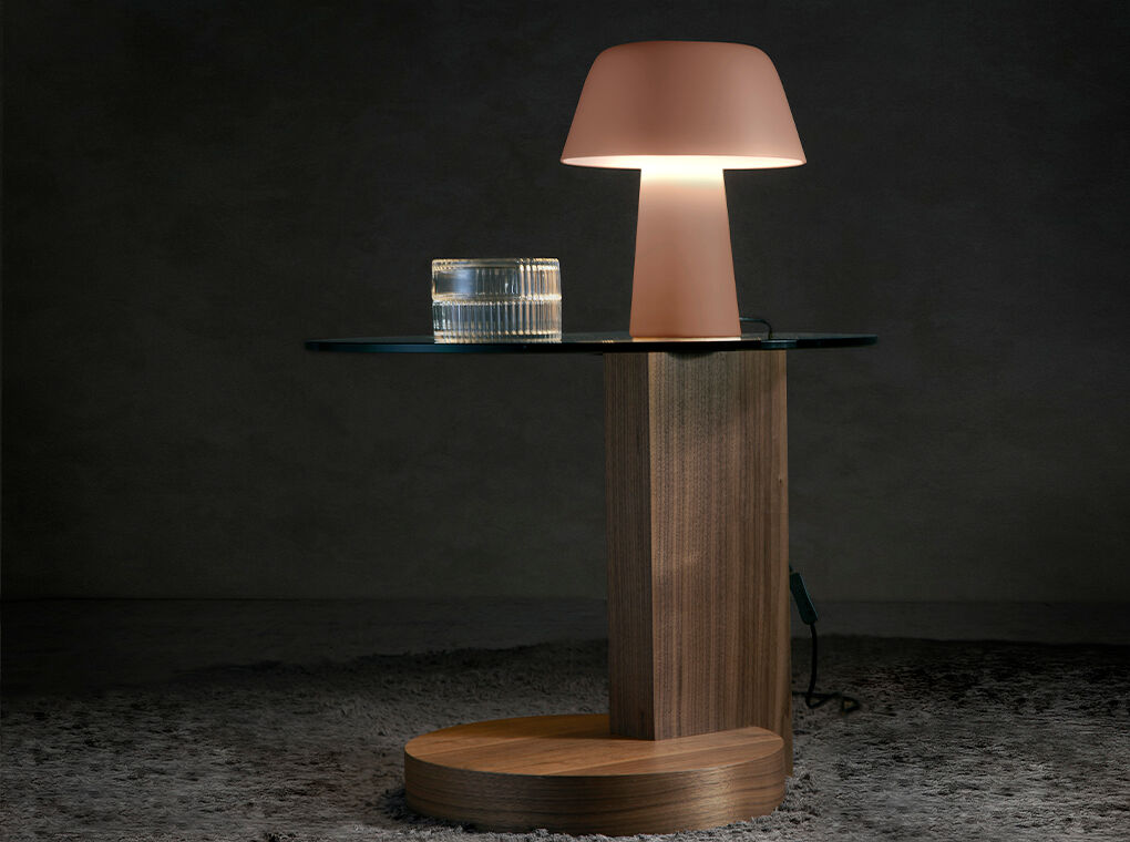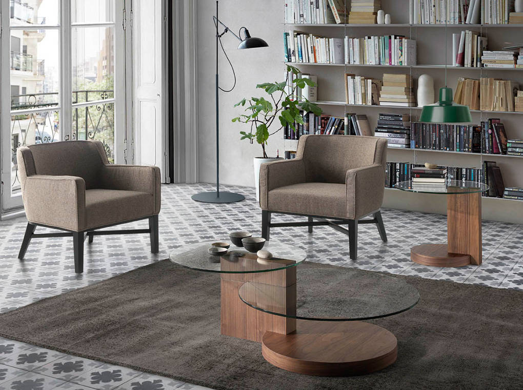 Mesa rincón redonda cristal templado y nogal modelo 2036 Angel Cerdá S.L.