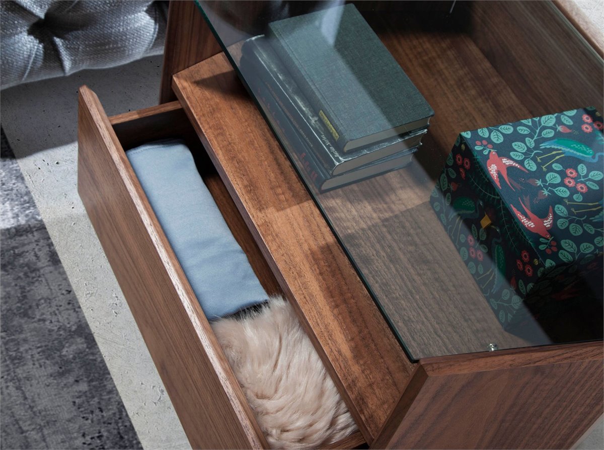Mesita de noche nogal con tapa de cristal templado modelo 7072 Angel Cerdá S.L.