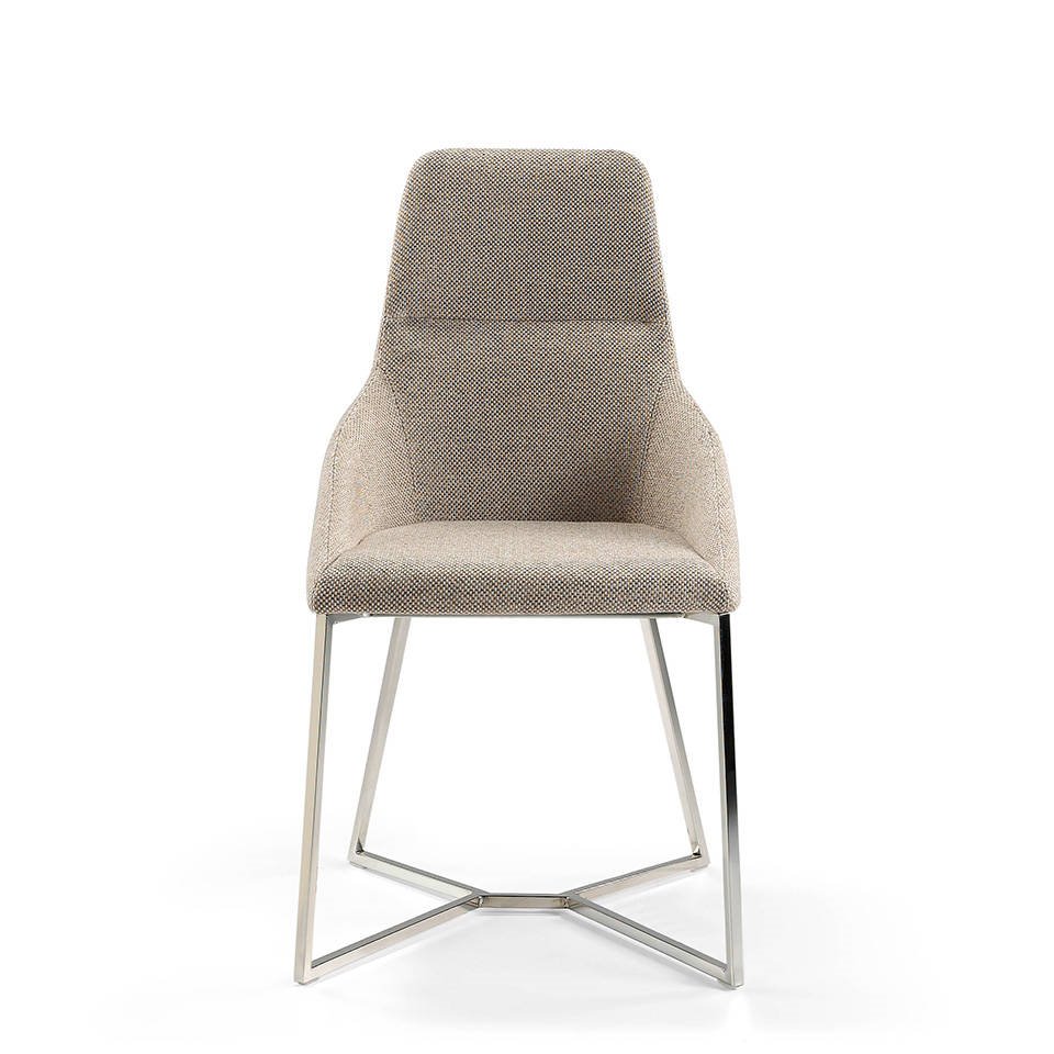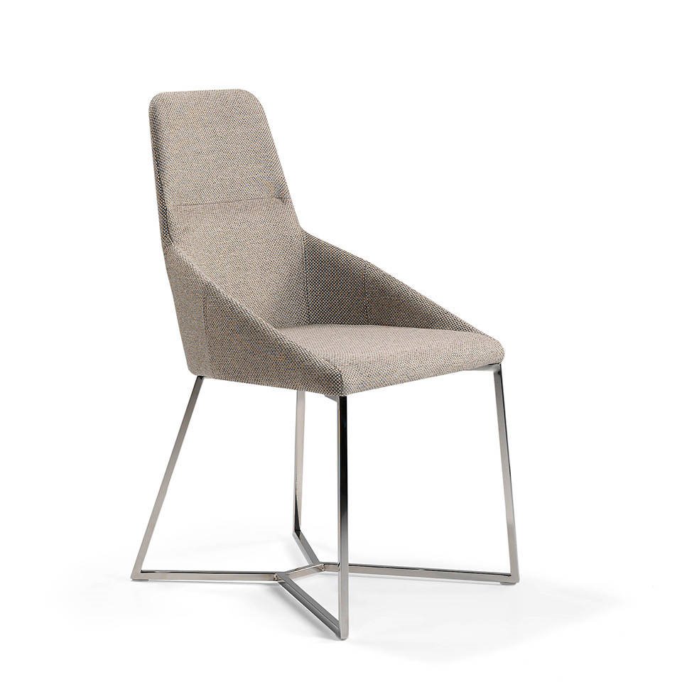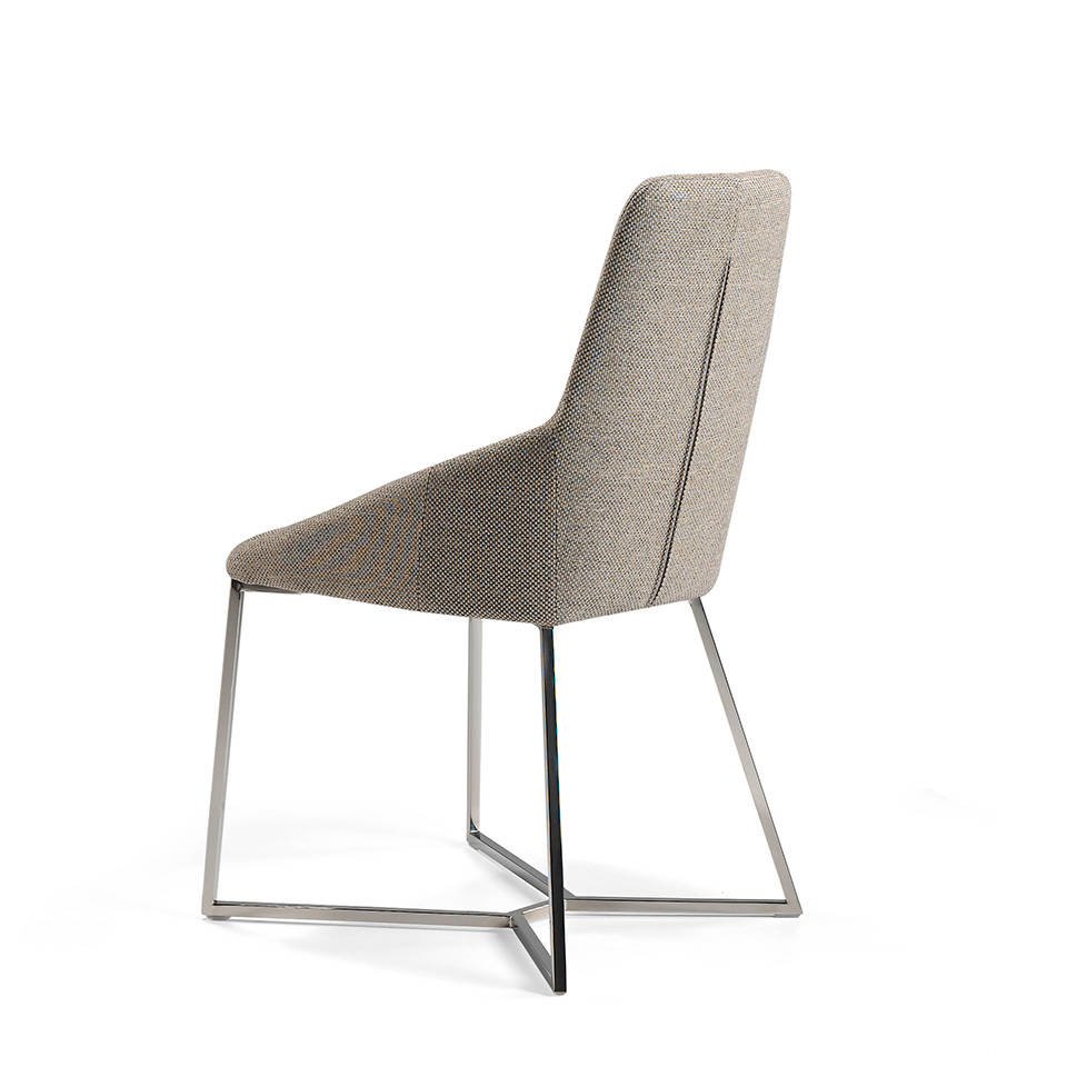 Silla de diseño moderno con asiento y respaldo tapizados en tela color gris. Sus patas de acero inoxidable cromado de estilo vanguardista a la vez que atemporal, la convertirán en el must have de su cocina o comedor. Esta silla de la firma Angel Cerdá, aúna el estilo único y personal de la marca, así como la mayor comodidad y estabilidad, gracias a la alta calidad de su tapizado y la original estructura de patas.