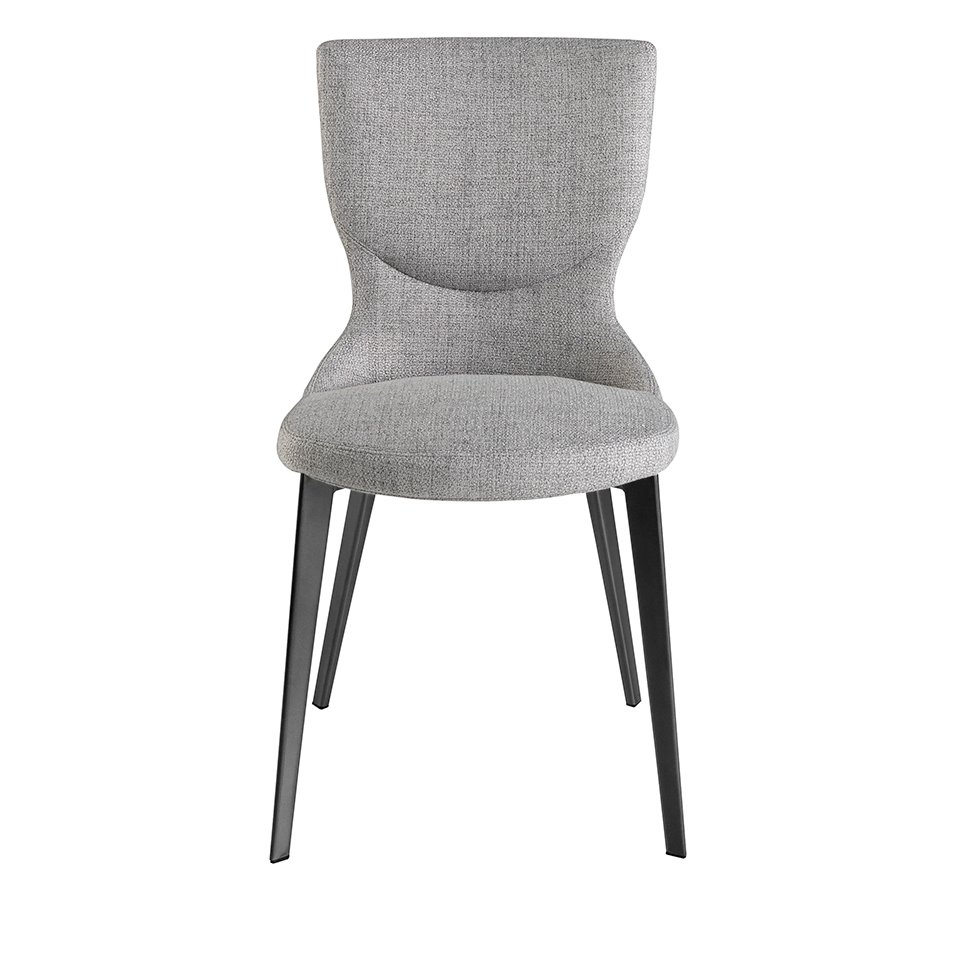 Silla de diseño moderno con asiento y respaldo tapizados en tela color gris. Sus patas de acero inoxidable color gris antracita metal de estilo vanguardista a la vez que atemporal, la convertirán en el must have de su cocina o comedor. Esta silla de la firma Angel Cerdá, aúna el estilo único y personal de la marca, así como la mayor comodidad y estabilidad, gracias a la alta calidad de su tapizado y la original estructura de patas.