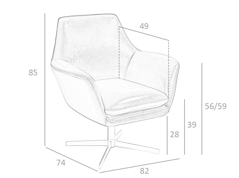 Sillón giratorio con reposabrazos de diseño moderno con asiento y respaldo tapizados en piel de origen vacuno color marrón. Tanto por su estilo, como por sus patas de acero inoxidable pulido, este sillón es la combinación perfecta entre diseño y confort.