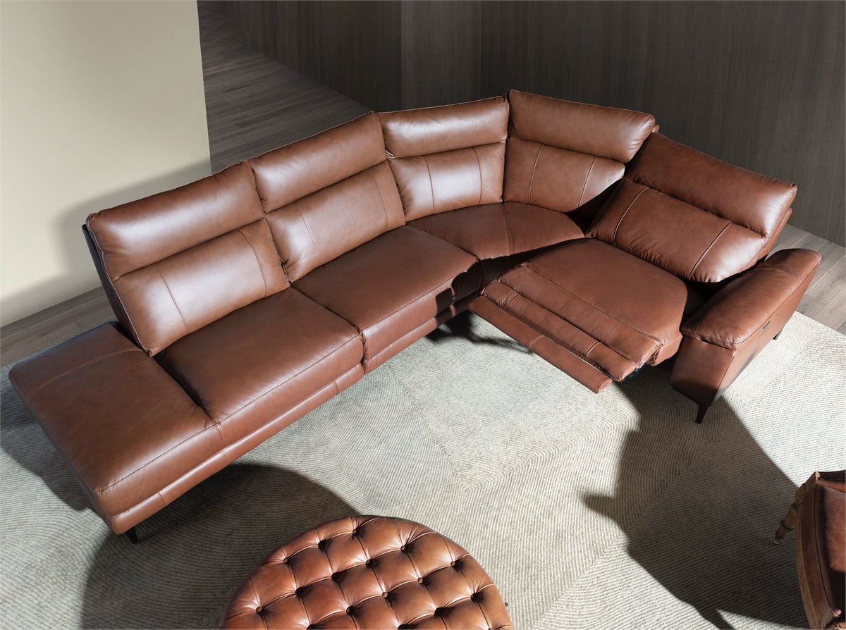 Sofá chaise longue relax izquierda piel marrón tabaco modelo 6216 Angel Cerdá S.L.