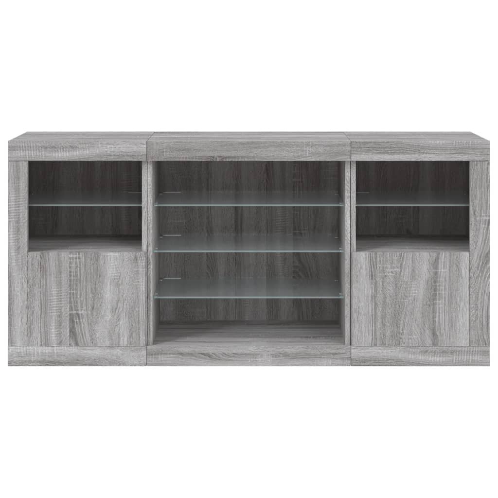 - Luces LED RGB: El armario buffet está equipado con brillantes luces LED RGB. Con diversos menús personalizables, puedes cambiar el color de las luces sin problemas e incluso hacer que se ajusten automáticamente. Estas luces LED no sólo realzan el aspecto moderno del aparador, sino que también le dan un toque de moda.