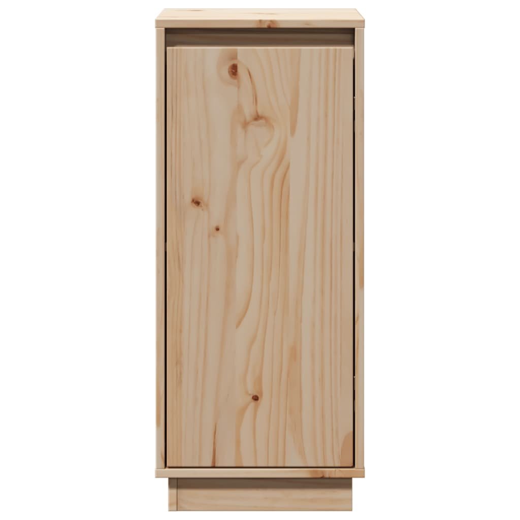 Este armario auxiliar está hecho de madera maciza de pino, lo que garantiza su durabilidad y estabilidad. El armario con puertas proporciona amplio espacio de almacenaje para libros, dispositivos multimedia y otros artículos. La robusta superficie también es ideal para exponer objetos decorativos, marcos de fotos o macetas.