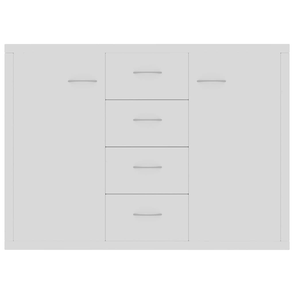 Con 4 cajones y 2 puertas, el aparador proporciona amplio espacio de almacenamiento para libros, dispositivos multimedia y otros artículos. La robusta superficie es ideal para exhibir objetos decorativos, marcos de fotos o plantas. También se puede usar como mueble bajo, armario auxiliar, etc. Gracias a la madera contrachapada de gran calidad, este aparador está diseñado para durar.