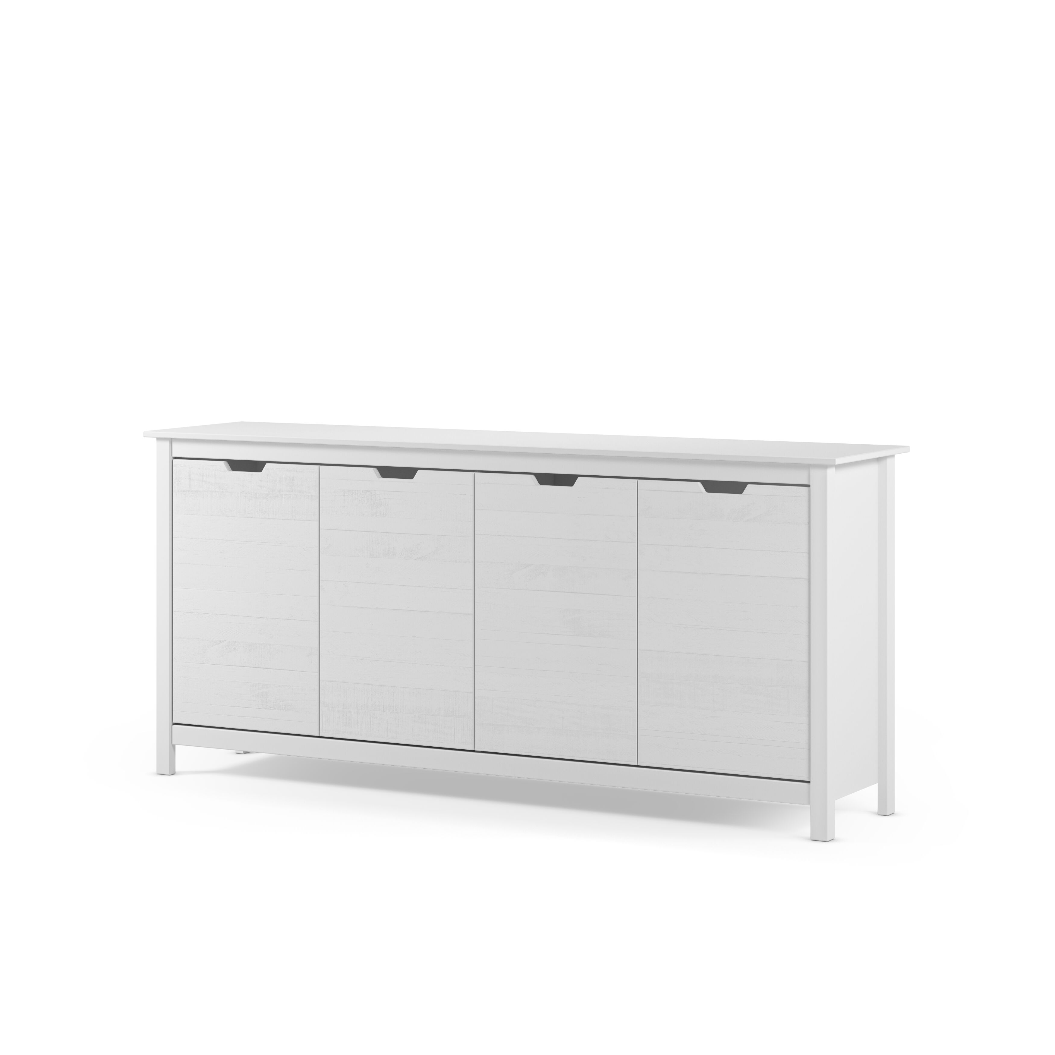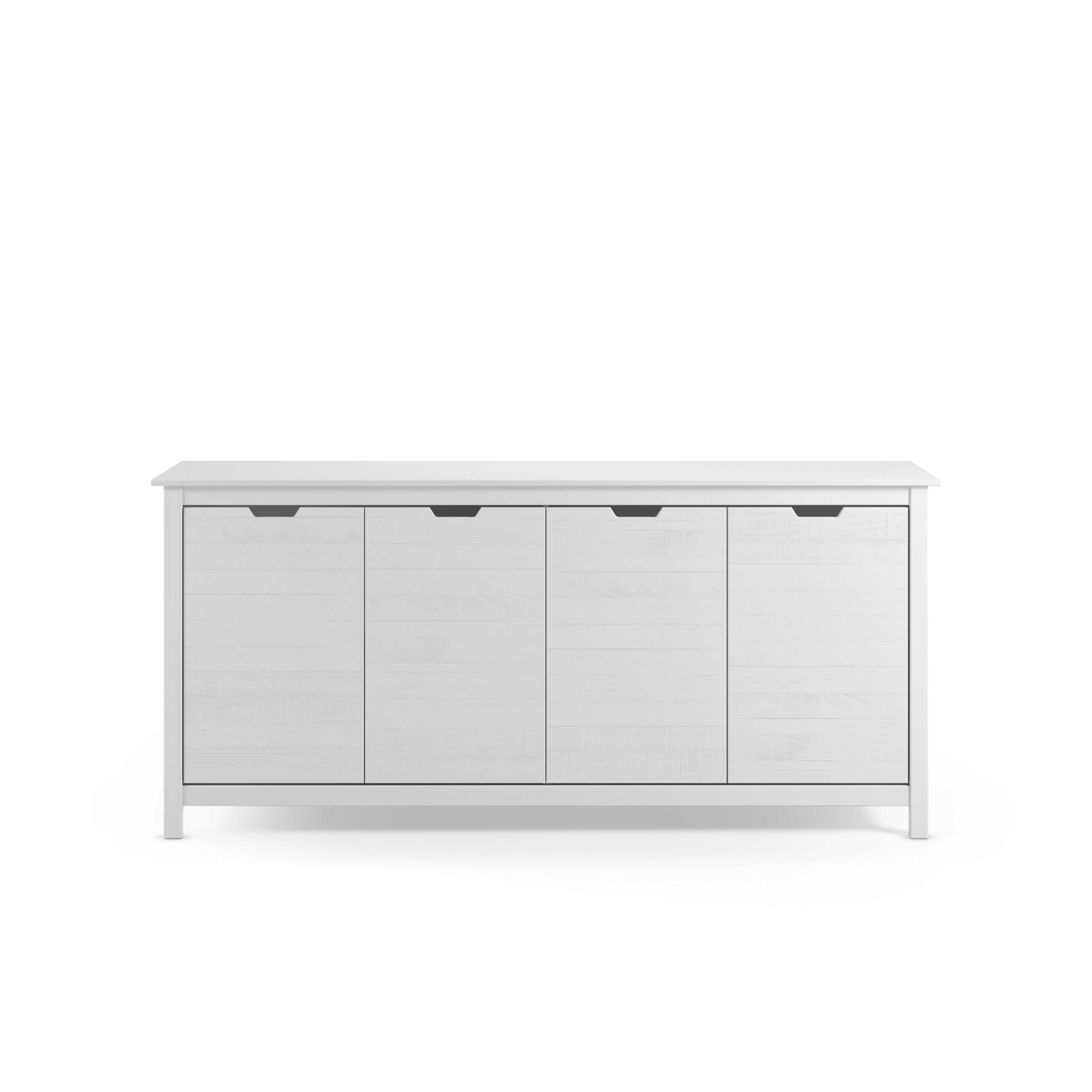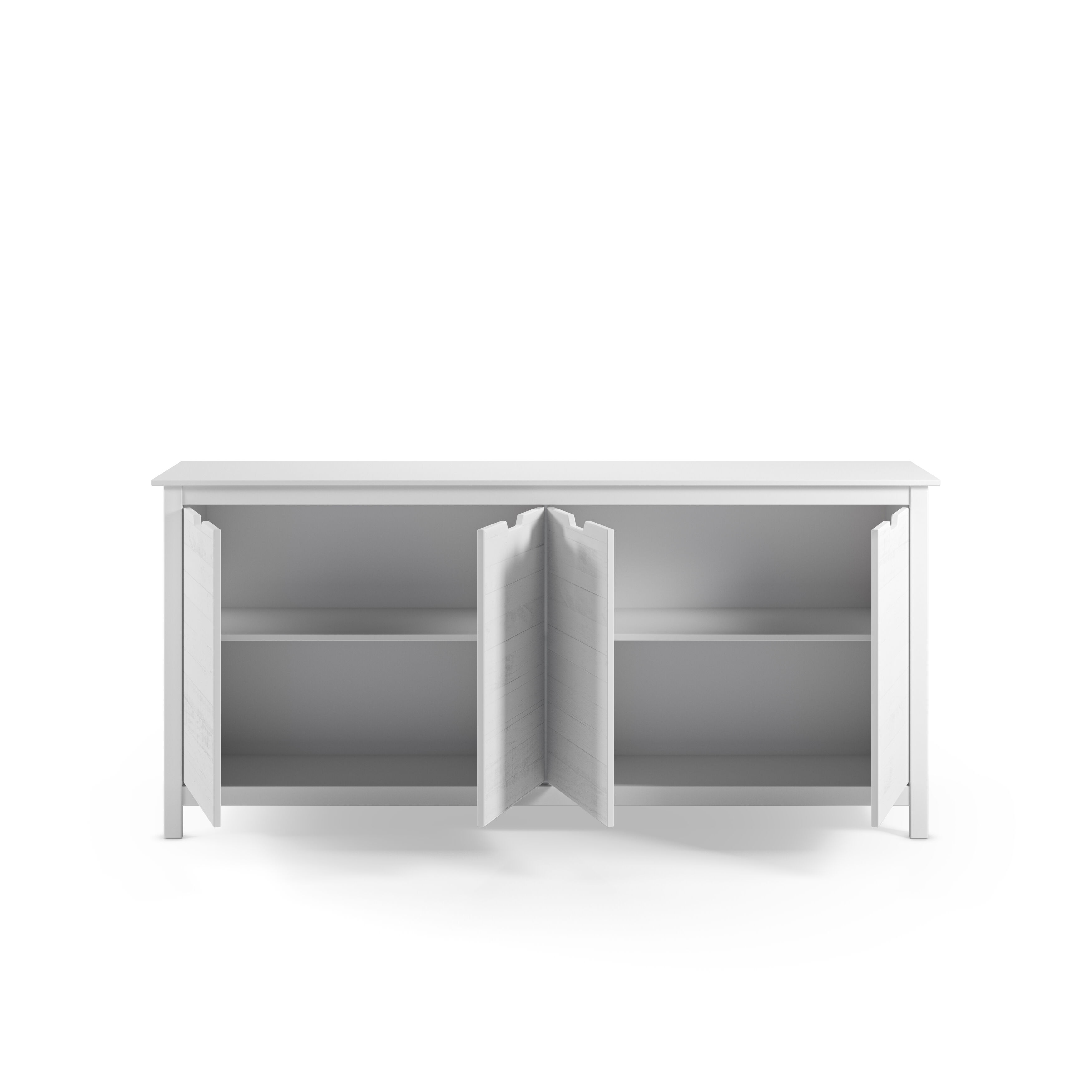 El aparador JULIETA combina elegancia y funcionalidad con un diseño moderno y práctico. Cuenta con 4 puertas, cada una con tiradores integrados que se funden con el diseño, aportando una estética limpia y sofisticada. En su interior, dispone de 4 huecos espaciosos, ideales para almacenar y organizar tus objetos con orden y facilidad. Fabricado en madera de pino con acabado en blanco, tanto en la estructura como en las patas, este aparador aporta luminosidad y frescura a cualquier ambiente, además de garantizar resistencia y durabilidad.