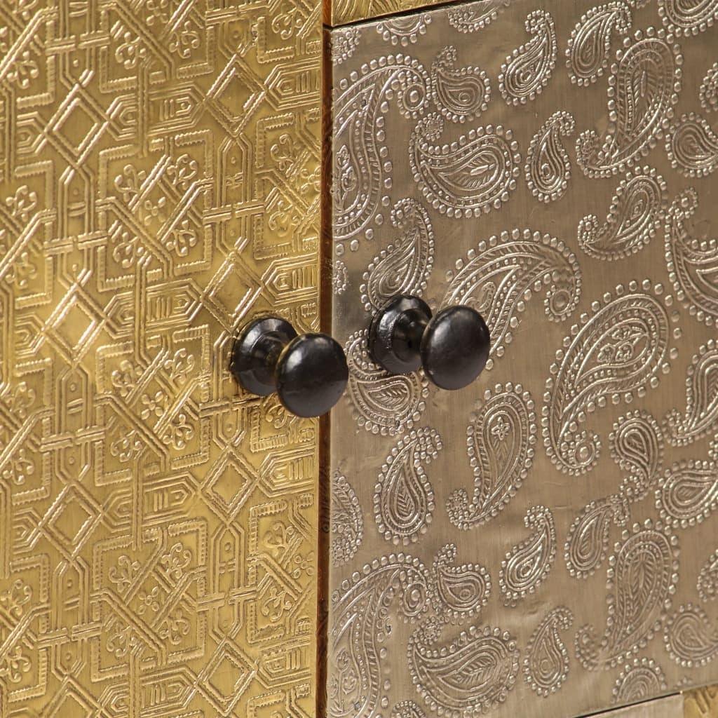Los bellos y decorativos detalles metálicos de diferentes tonalidades, así como los tiradores de estilo antiguo, dotan a este armario de madera de un toque lujoso.