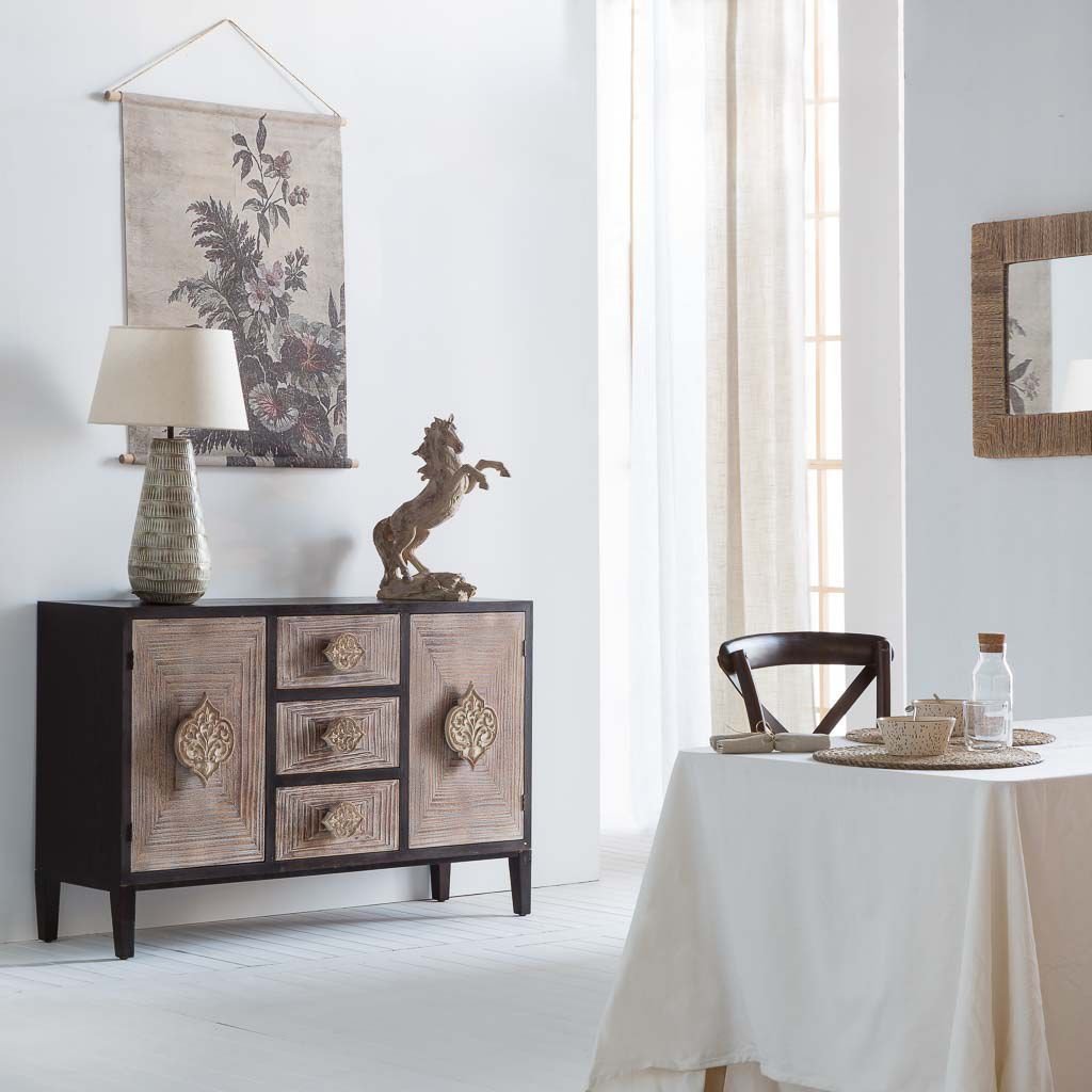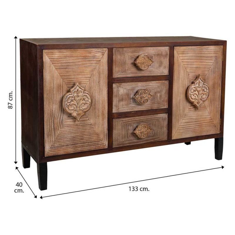 Nuestro Aparador de Madera con 2 Puertas y 3 Cajones es una pieza imprescindible para tu hogar. Con sus dimensiones de 133x40x87h cm, este aparador combina funcionalidad y estilo de manera excepcional.