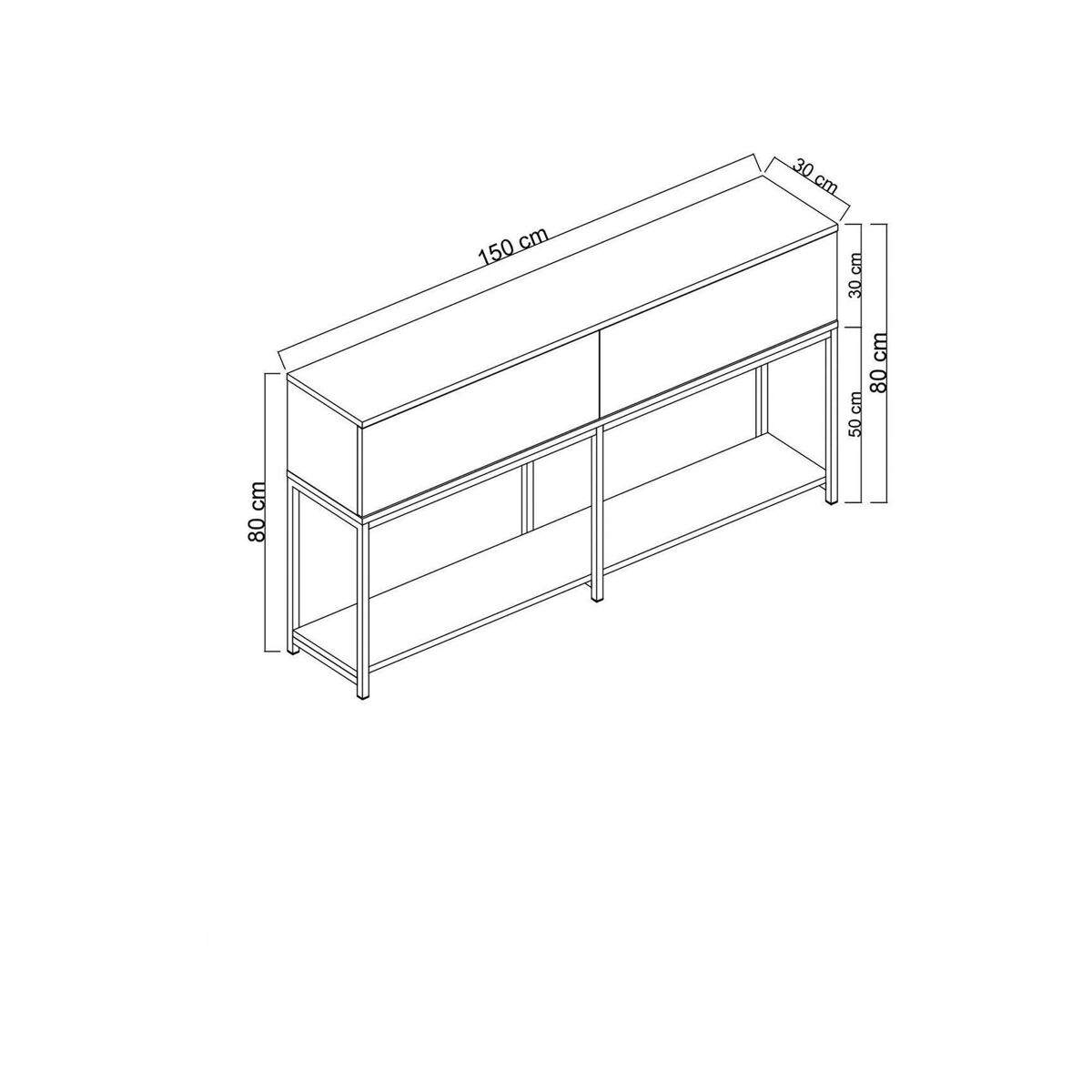 DIMENSÕES EM CM - Aparador: Comprimento: 150 Largura: 30 Altura: 80