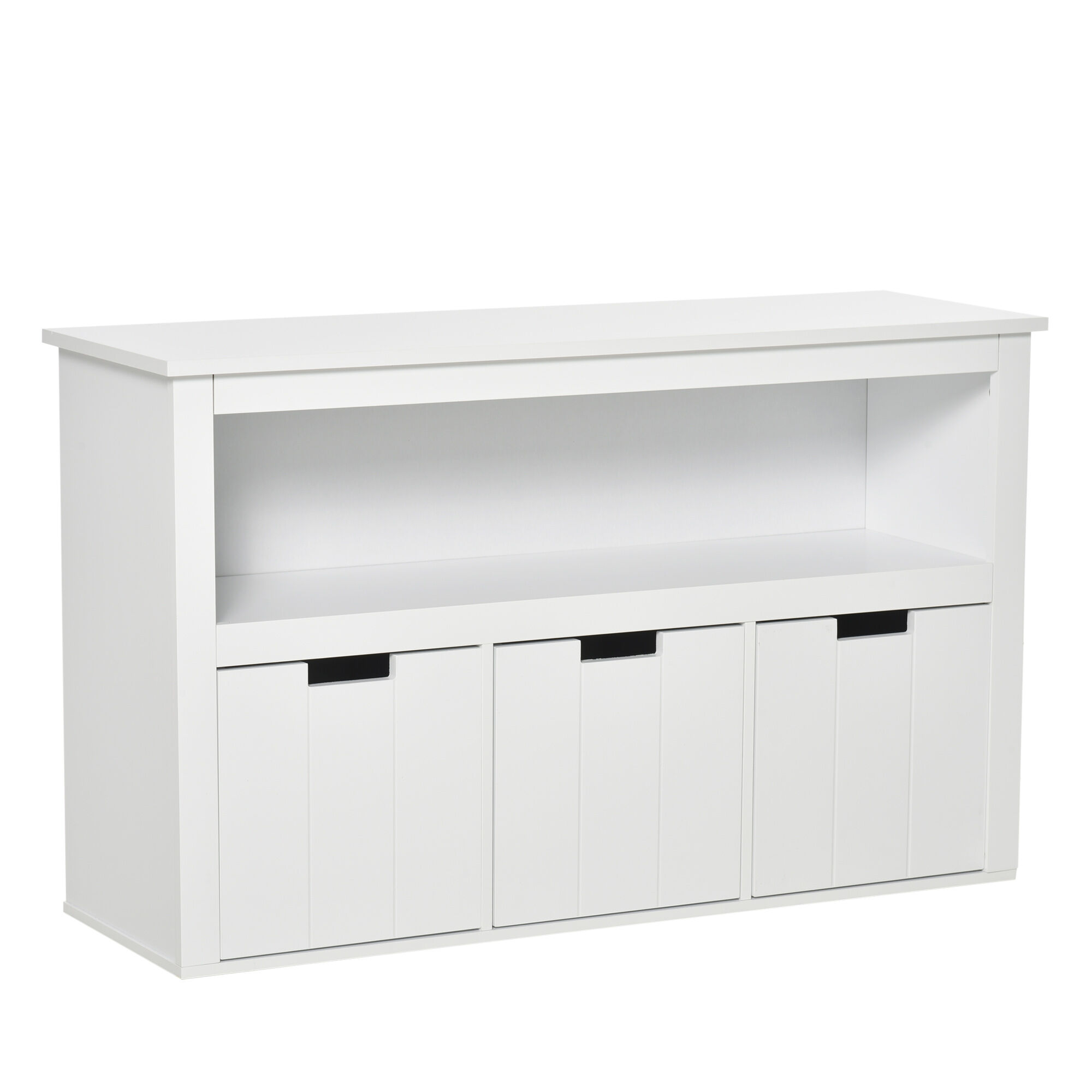 Si buscas un mueble práctico y funcional, este mueble auxiliar de salón de HOMCOM es ideal. Proporciona un amplio espacio de almacenamiento y podrás tener organizados todos tus libros, ropa u otros objetos que desees. Compuesto por una amplia encimera, un estante abierto y 3 cajones en forma de cubos, dispondrás de espacio suficiente para tener cualquier estancia de tu casa ordenada. El acabado en color blanco aportará un toque de modernidad y elegancia a tu casa.