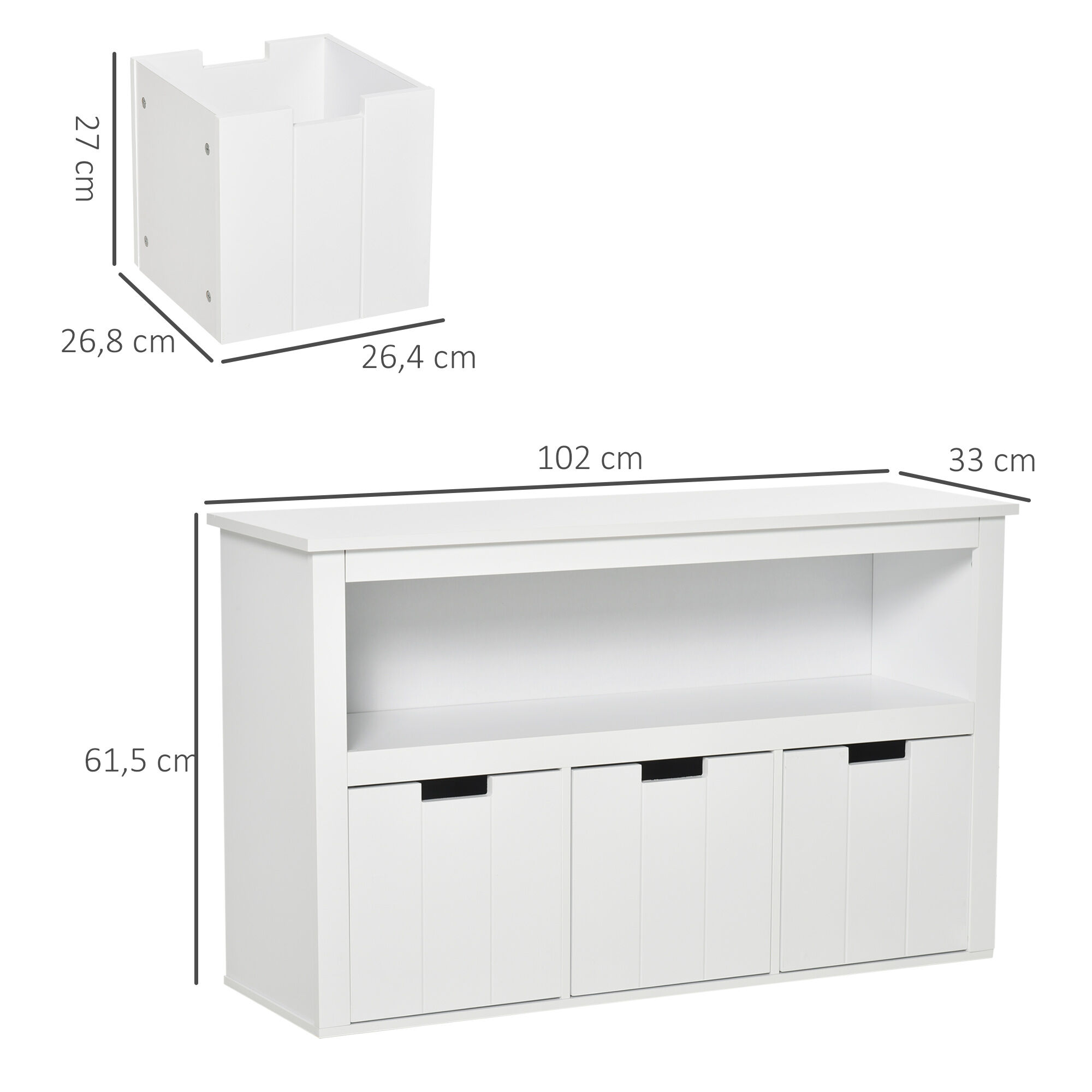 - Medidas interiores del cajón: 26,4x26,8x27 cm (LxANxAL)