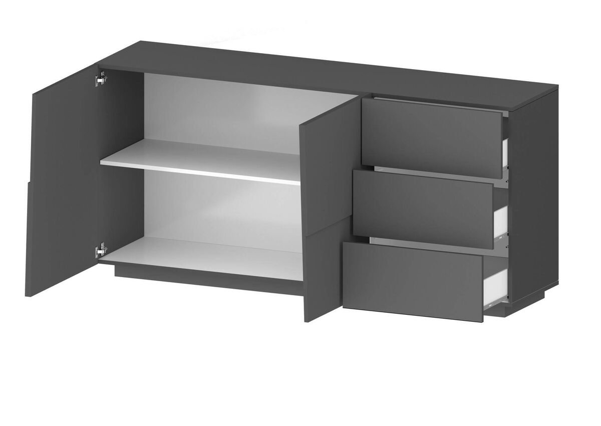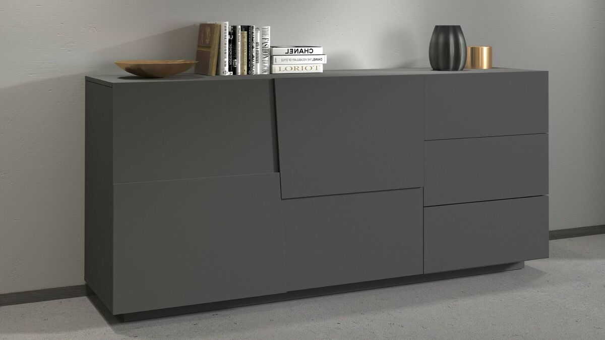 CREDENZA - Buffet de sala, Aparador de sala com 2 portas e 3 gavetas, 180x44h86 cm, Antracite.