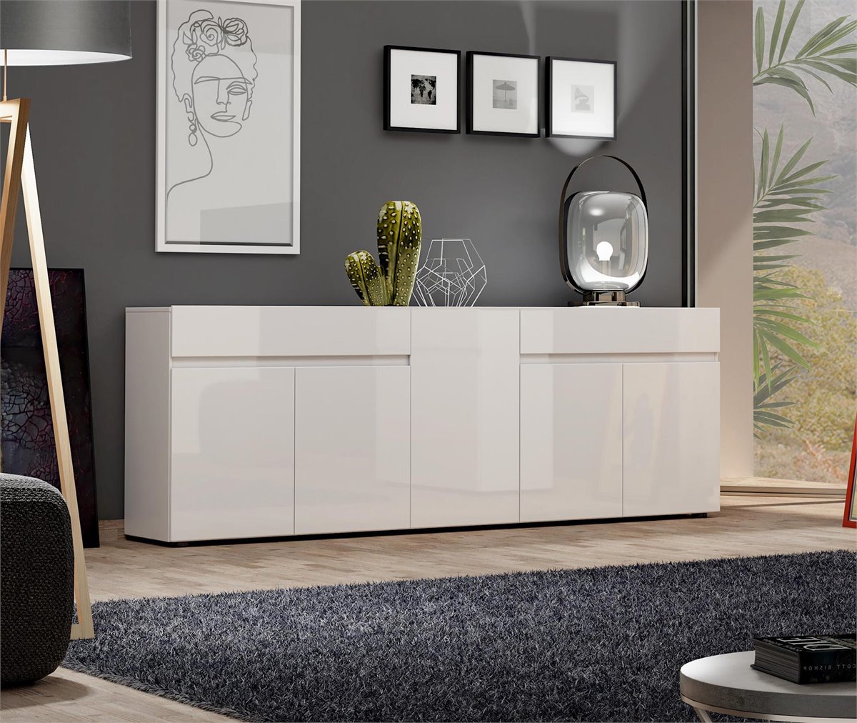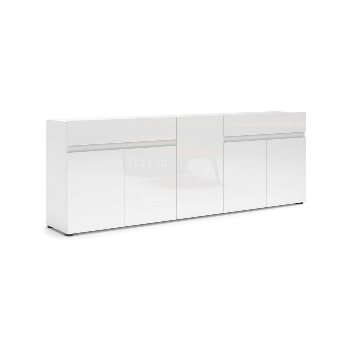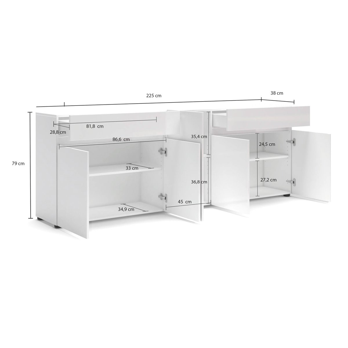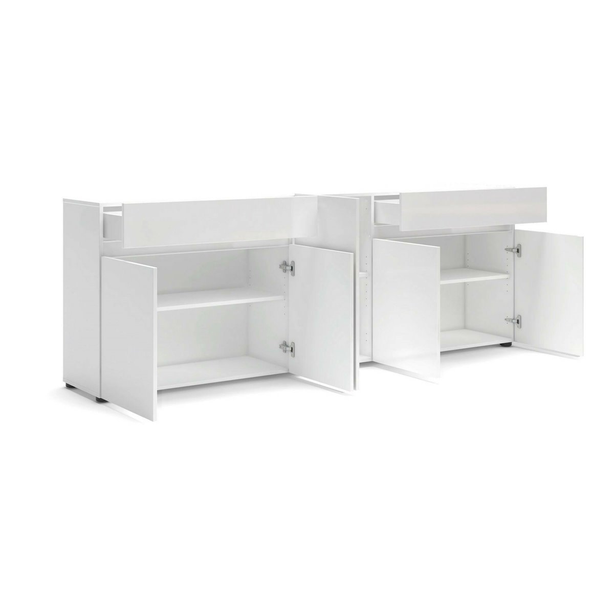 CREDENZA - Buffet de sala, Aparador de sala, Despensa de cozinha, Fabricado na Itália, 225x38h79 cm, Branco brilhante.