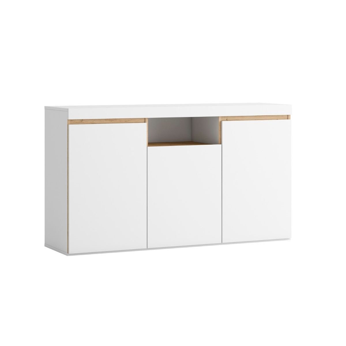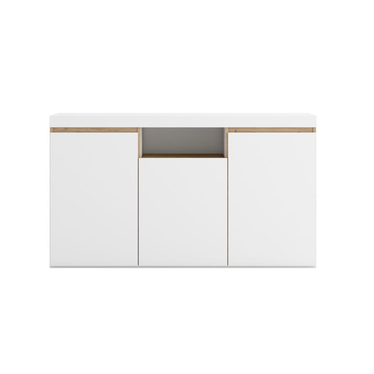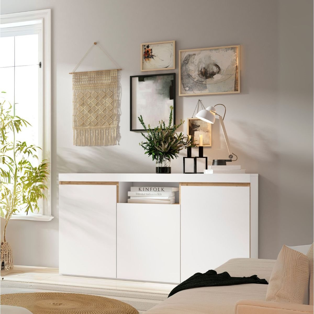 El aparador Elis está fabricado en melamina de alta calidad de 16 mm, un material resistente y duradero al paso del tiempo. Está formado por 1 repisa superior, 1 hueco de almacenaje y 3 puertas abatibles. Es un mueble ideal para almacenar tanto objetos funcionales del día a día (manteles, vajilla o cubertería) como piezas de decoración (fotos, figuras o plantas de interior). De estilo nórdico y con una línea muy moderna, este aparador es ideal para todo tipo de salones, al igual que como complemento para dormitorios o despachos. Gracias a la calidad de sus materiales y a su superficie lisa, podrás limpiarlo y mantenerlo cuidado sin esfuerzo. Por otro lado, se incluyen todos los herrajes, tiradores, piezas e instrucciones necesarias para que puedas montarlo fácilmente. Dale un aire fresco y renovado a tu salón con este aparador Elis. ¡Consigue el tuyo al mejor precio en Embargosalobestia!