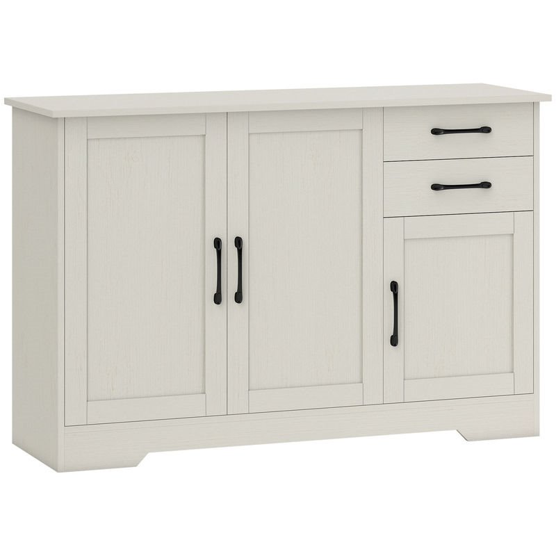 ¿Tienes el comedor lleno de cosas y necesitas orden sin renunciar al estilo? Este aparador de HOMCOM es la solución. Con dos cajones, dos armarios y un estante ajustable, ofrece almacenamiento flexible para lo que necesites. Gracias a su diseño moderno con efecto madera y tiradores negros, encaja en comedores, salones o pasillos. Las puertas con cierre suave evitan ruidos y su kit antivuelco aporta seguridad. Ideal para mantener el orden con un toque decorativo.