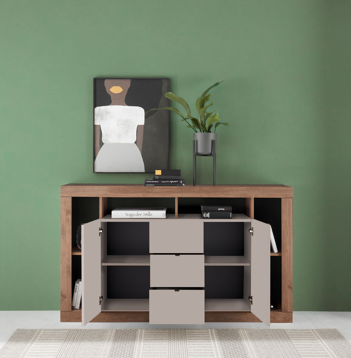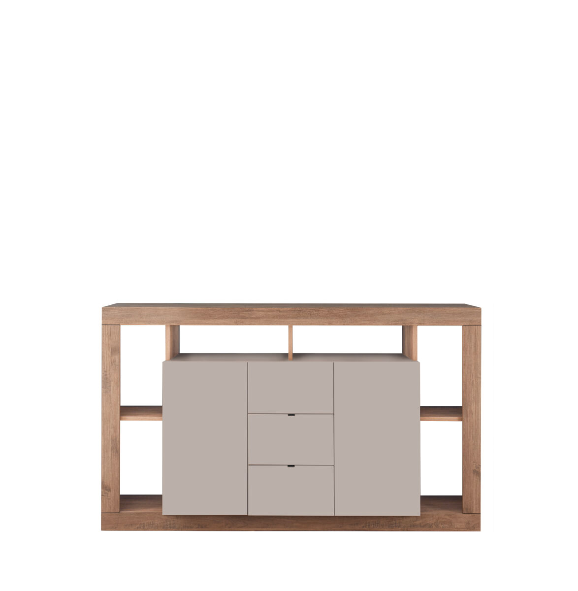 ¿Quieres añadir estilo y funcionalidad a tu hogar? El aparador RIMINI es la elección perfecta. Con dos puertas y tres cajones con freno, este elegante mueble te ofrece amplio espacio de almacenamiento para tus objetos más preciados. Fabricado con panel de partículas de alta calidad en un hermoso acabado color roble/visón, es una verdadera joya para cualquier salón. Sus medidas de 172anx102alx42fon cm lo convierten en un mueble versátil que se adapta a cualquier espacio. No esperes más y dale un toque sofisticado a tu hogar con el aparador RIMINI