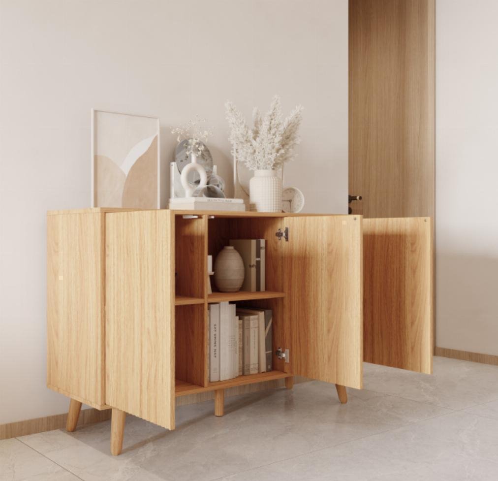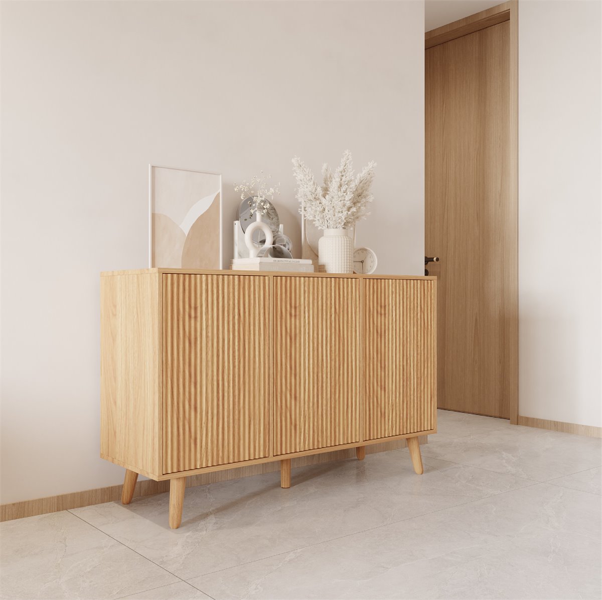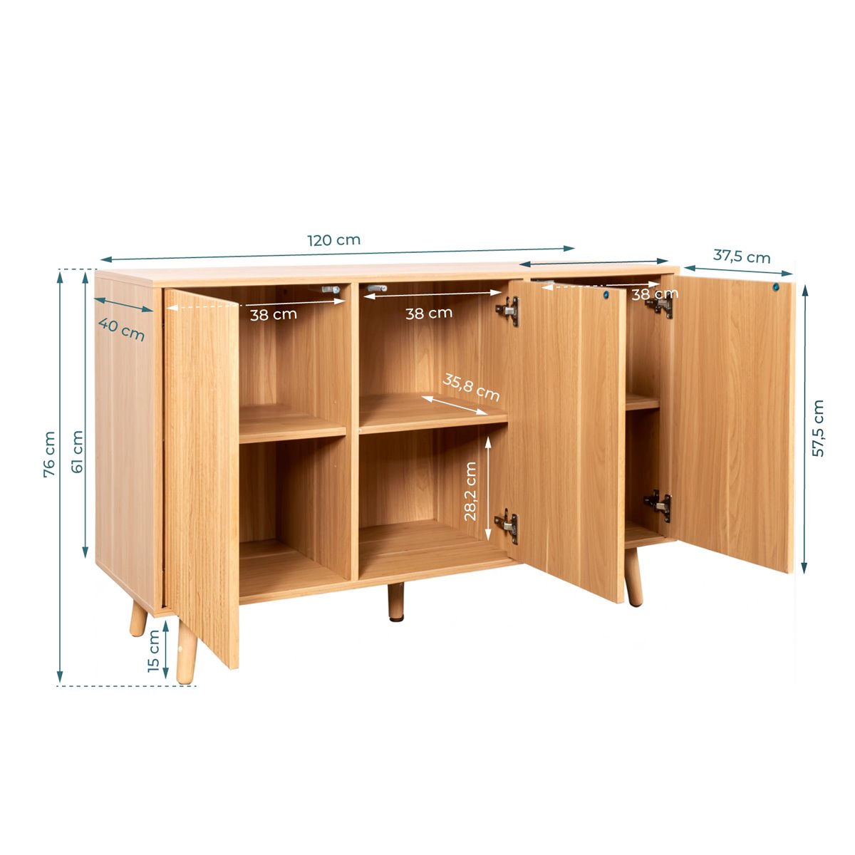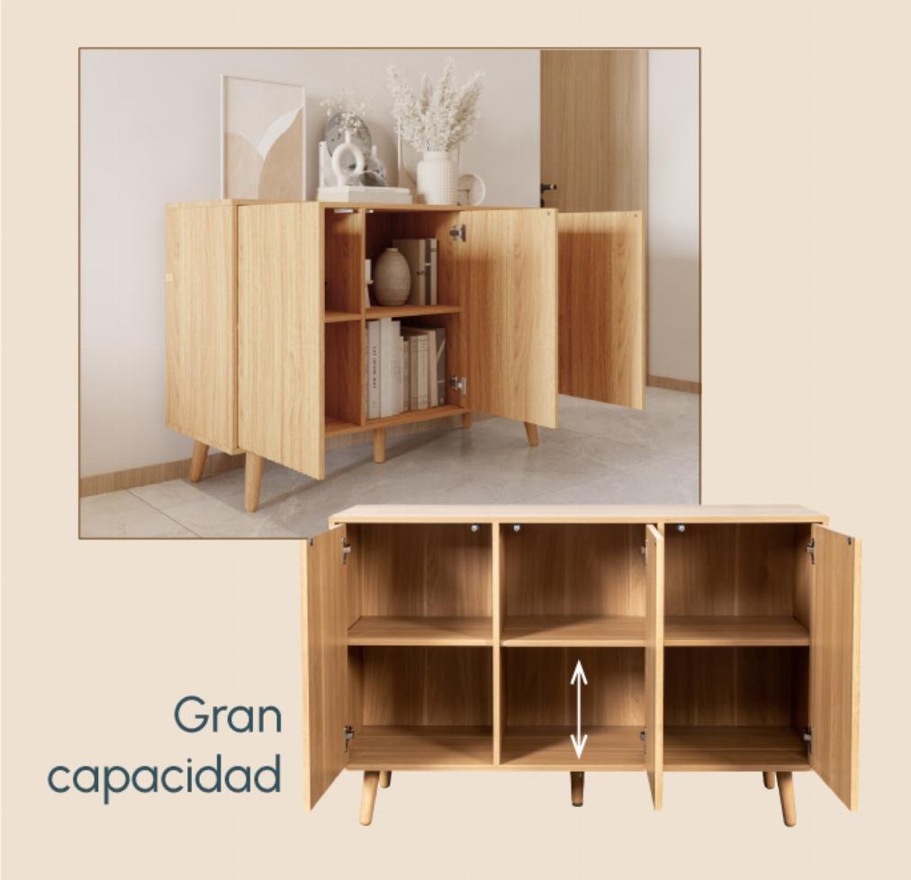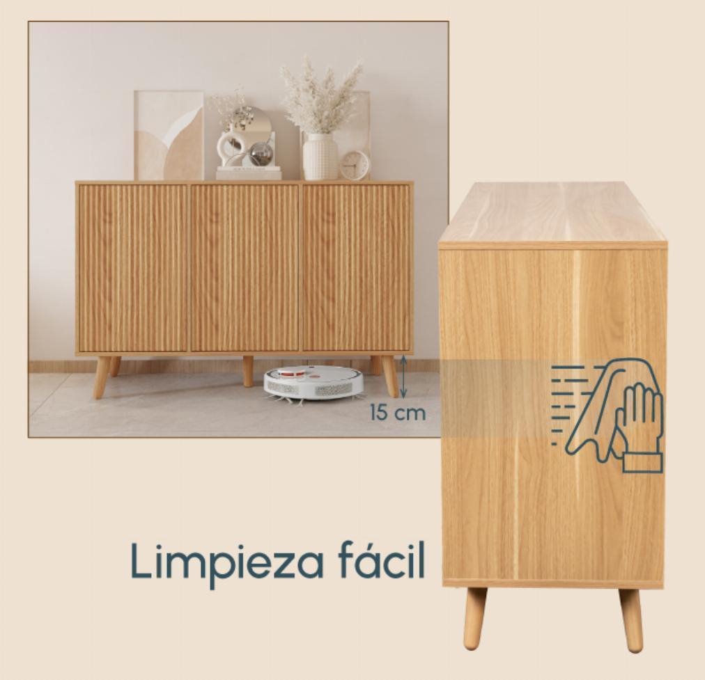 Añade un toque de diseño escandinavo y funcionalidad a tu hogar con este aparador nórdico de color efecto madera roble. Sus líneas limpias y puertas aportan una estética moderna y minimalista, sin necesidad de tiradores gracias a su apertura push-click. Este mueble de almacenaje ofrece una gran capacidad para mantener el orden. En su interior, los estantes son perfectos para organizar tus libros, vajilla y otros objetos del hogar. Además, sus patas altas permiten que un robot aspirador pase por debajo, facilitando la limpieza y el mantenimiento. Un mueble versátil que se adapta a la perfección en salones, comedores o recibidores, ideal para un estilo de vida contemporáneo y práctico.