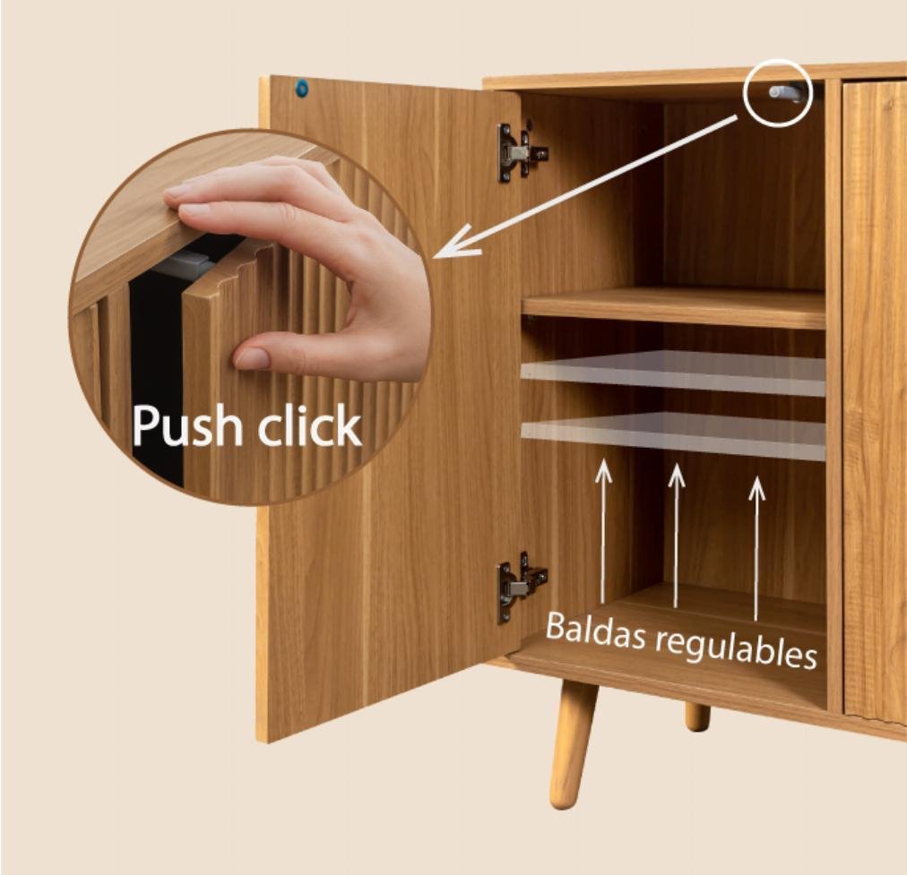 Estructura de melamina, garantiza durabilidad y resistencia diariaPuertas con diseño acanalado