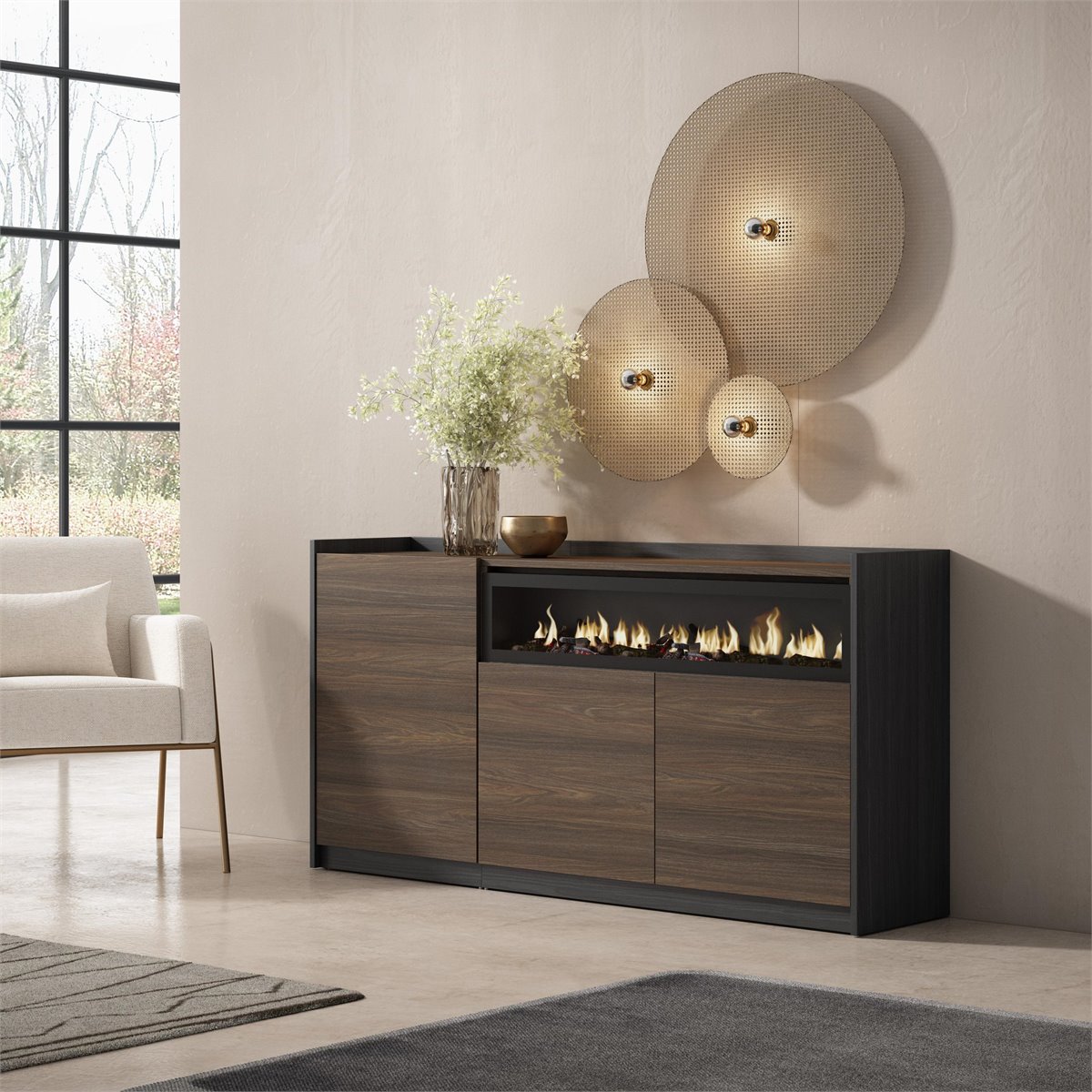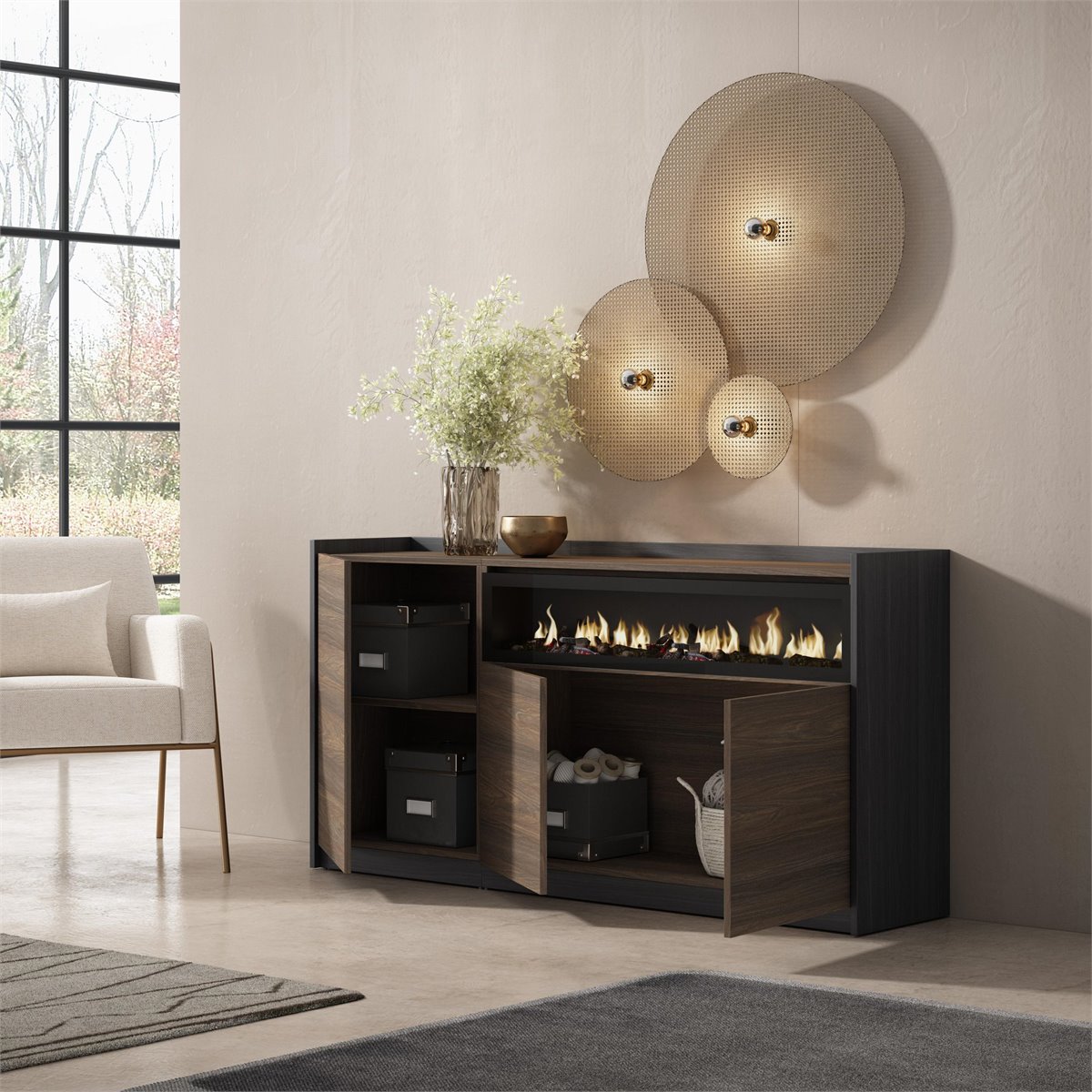 Módulo con 2 puertas, gran capacidad de almacenamiento. Medidas del Módulo: 104cm. de Ancho, 80cm. de Alto, 37cm. de Profundidad. Color negro y roble con veteado de madera de tacto poroso de alta calidad.