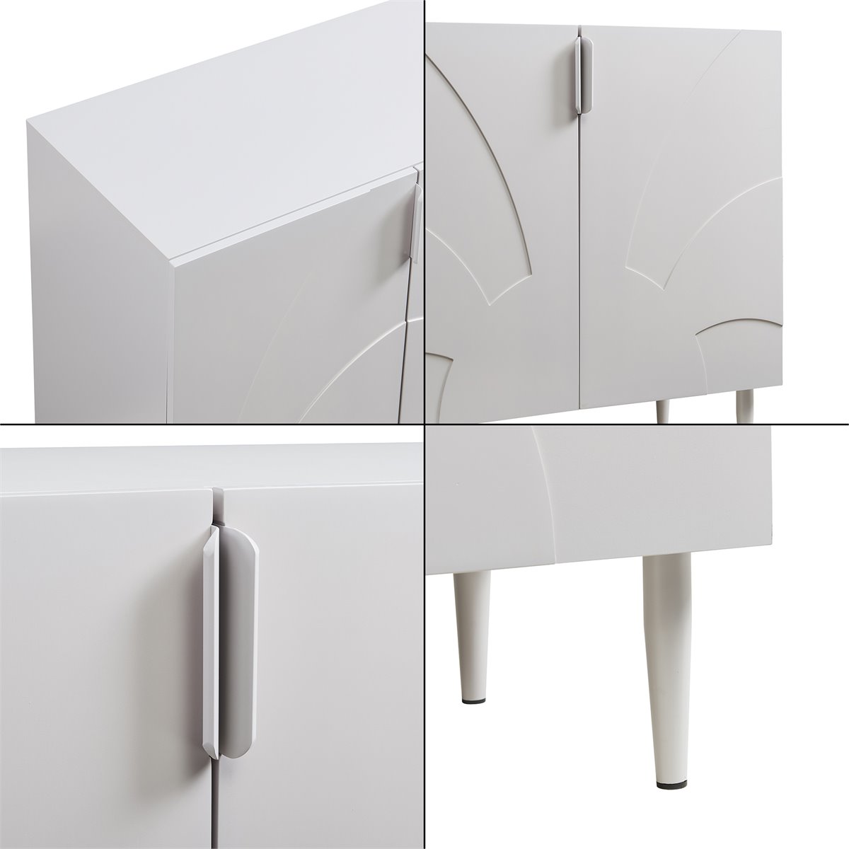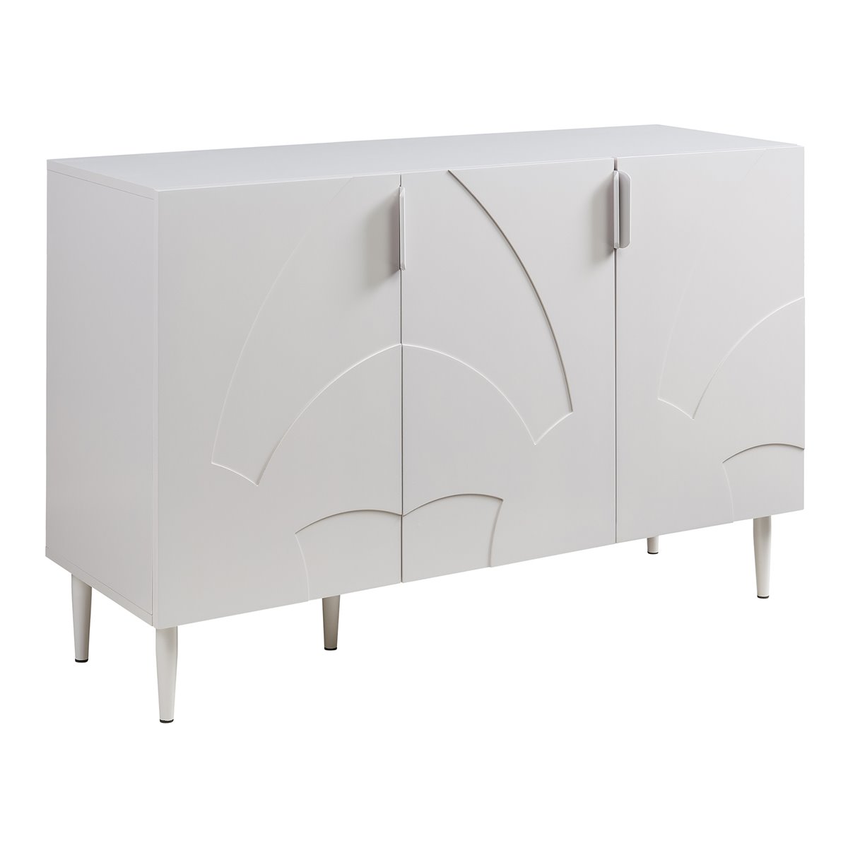 El aparador STARVILI combina elegancia y funcionalidad, convirtiéndose en un complemento ideal para tu hogar. El mueble de salón incluye tres puertas batientes con un diseño moderno y artístico y cuatro amplios compartimentos interiores que ofrecen espacio más que suficiente para organizar tus pertenencias.