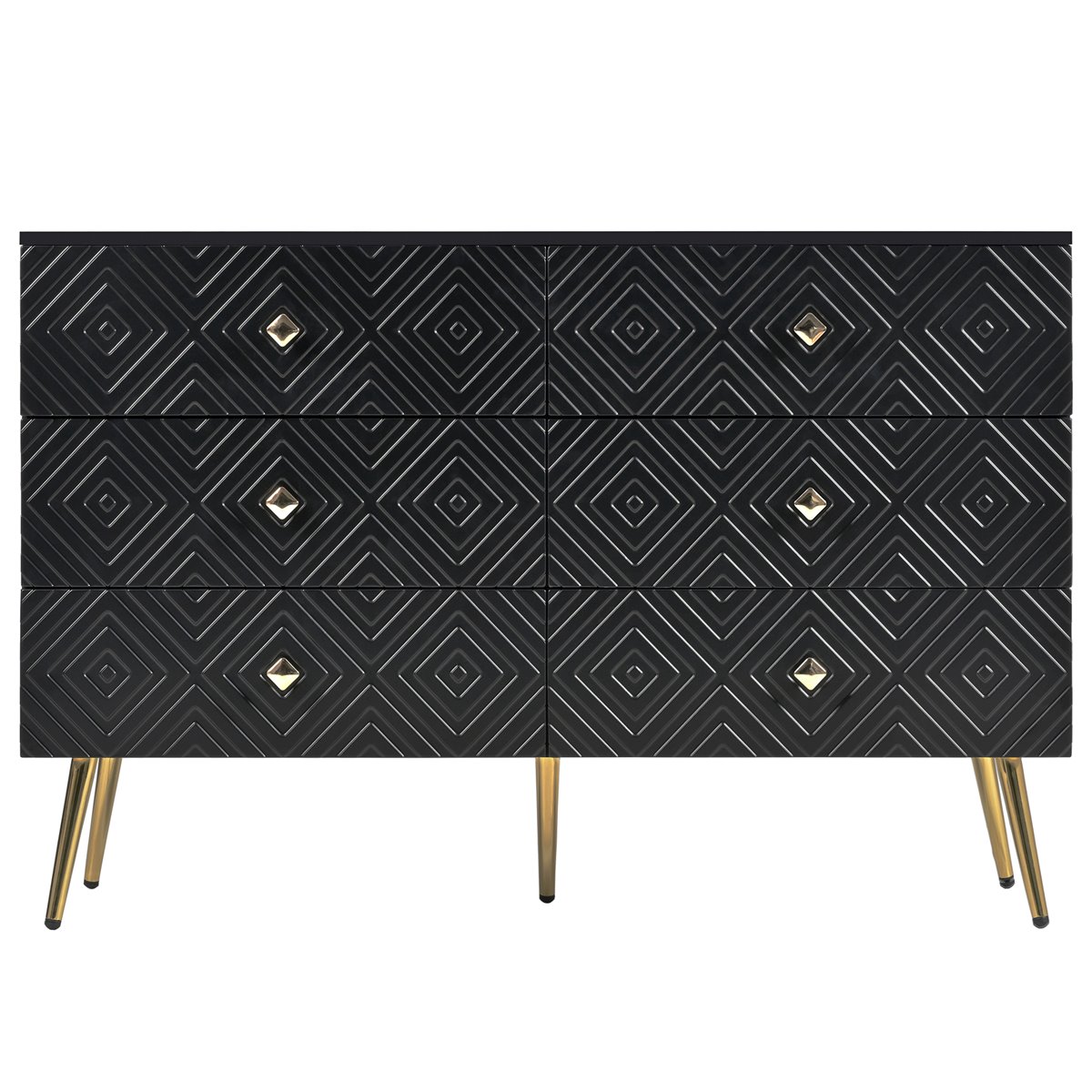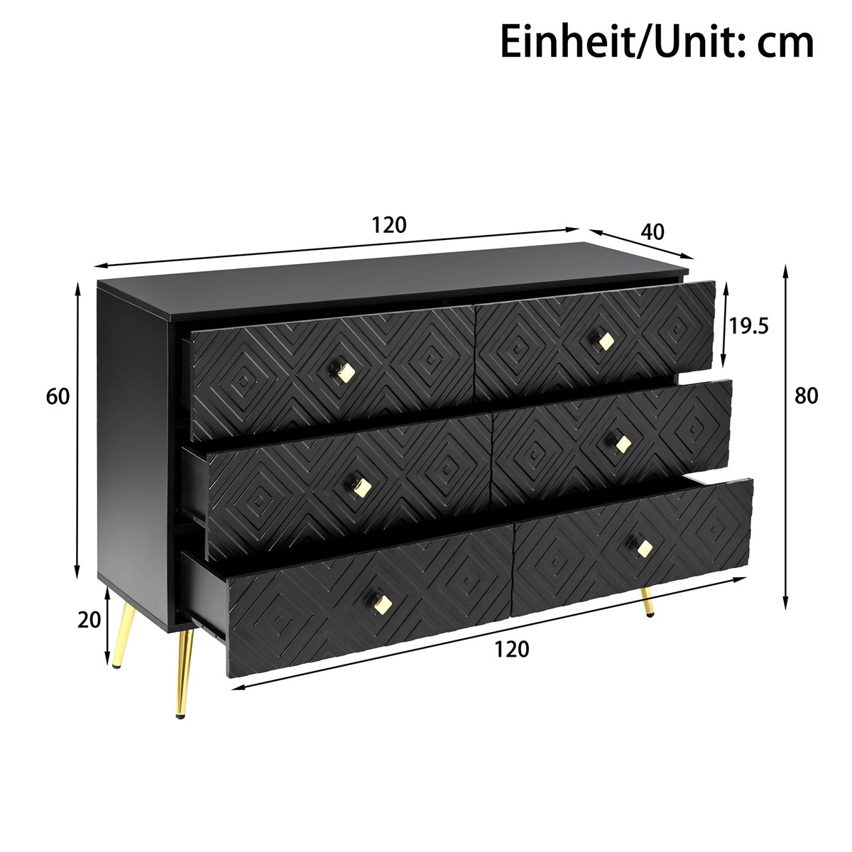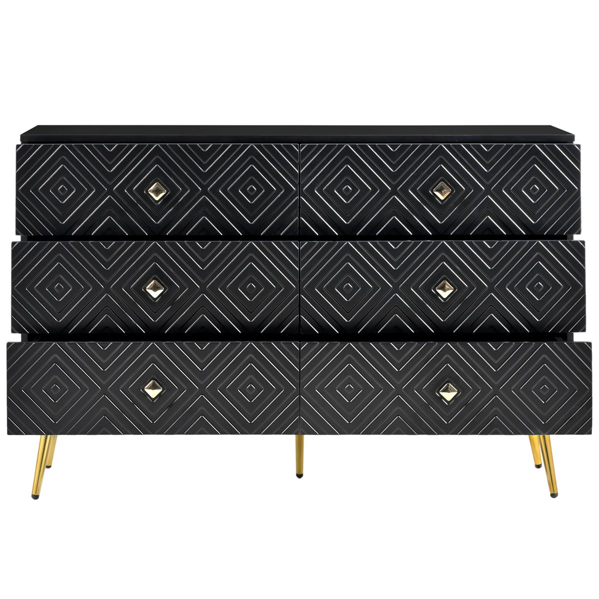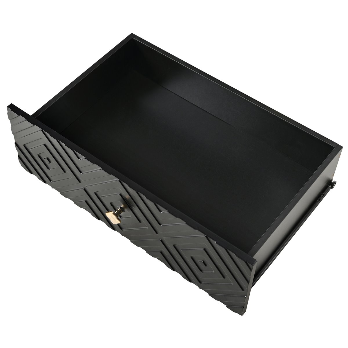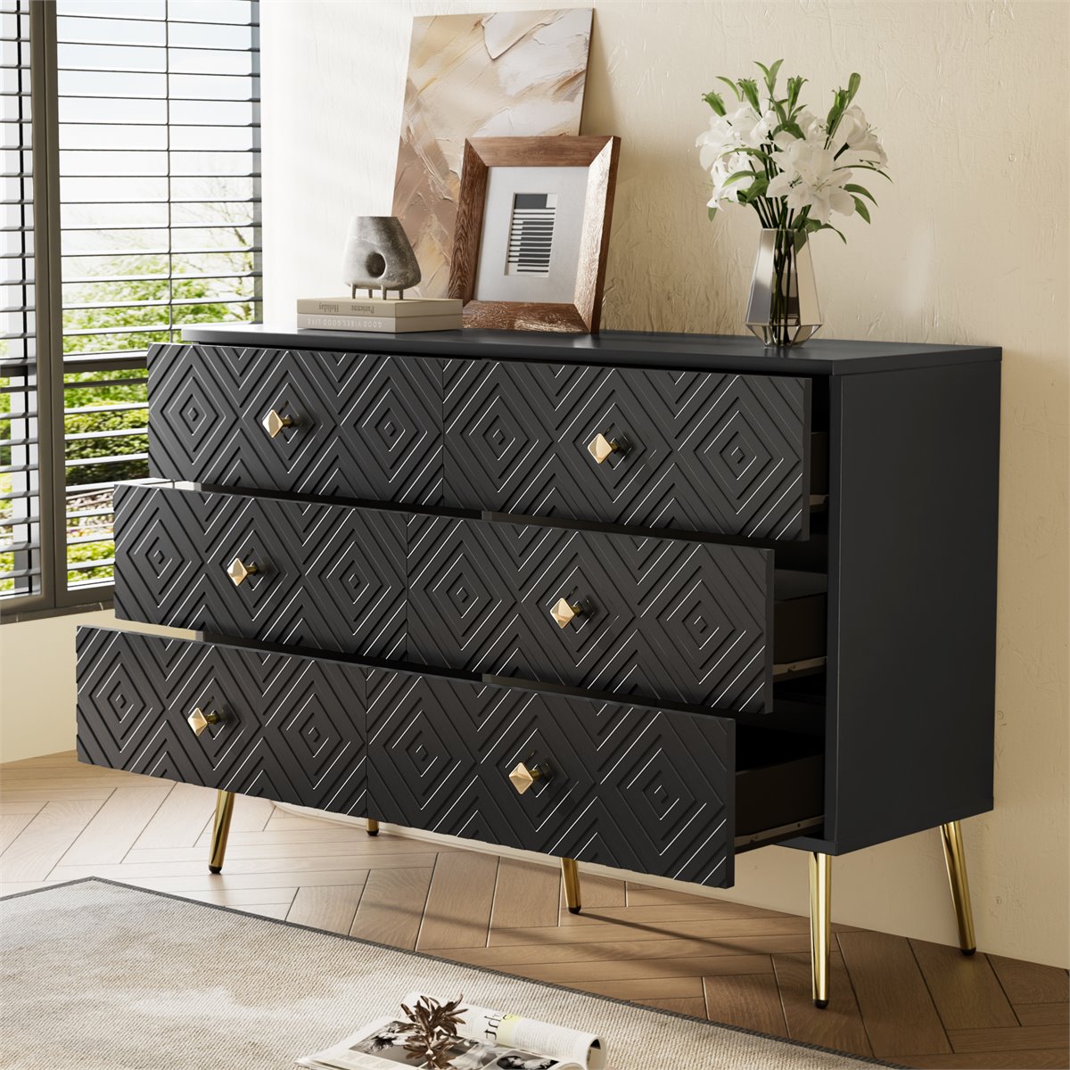 - Diseño moderno: Esta cómoda negra con patrones geométricos y tiradores en forma de diamante aporta un toque elegante y contemporáneo a tu hogar.
