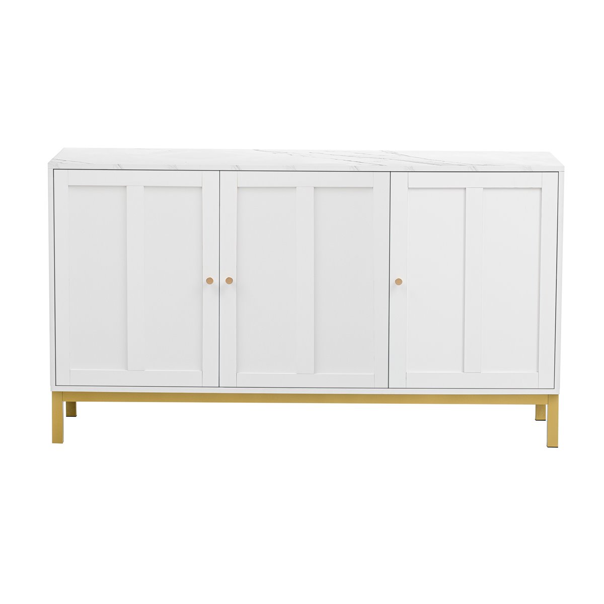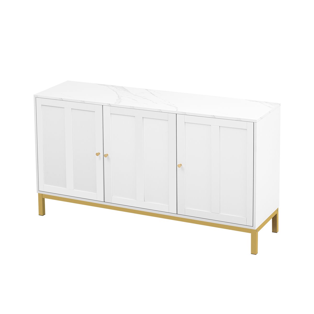 Este buffet tiene un aspecto elegante y moderno con líneas limpias y siluetas minimalistas. Las puertas de 3 paneles presentan un marco cuadrado único que añade profundidad y sofisticación. La superficie de efecto mármol añade un toque de lujo, lo que lo convierte en la combinación perfecta de estilo y funcionalidad para cualquier espacio moderno.