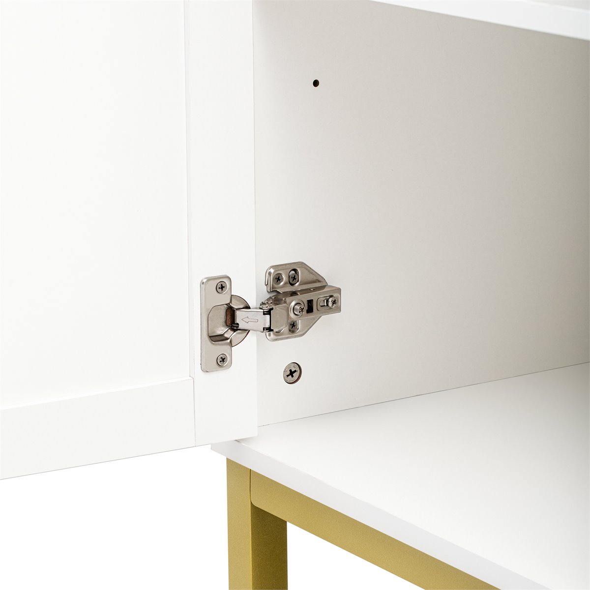 Fabricado a partir de MDF de alta calidad, este buffet está diseñado para ser duradero y estable. Las manijas de latón están chapadas y pulidas, complementando los pies de metal robustos y ofreciendo un soporte sólido.