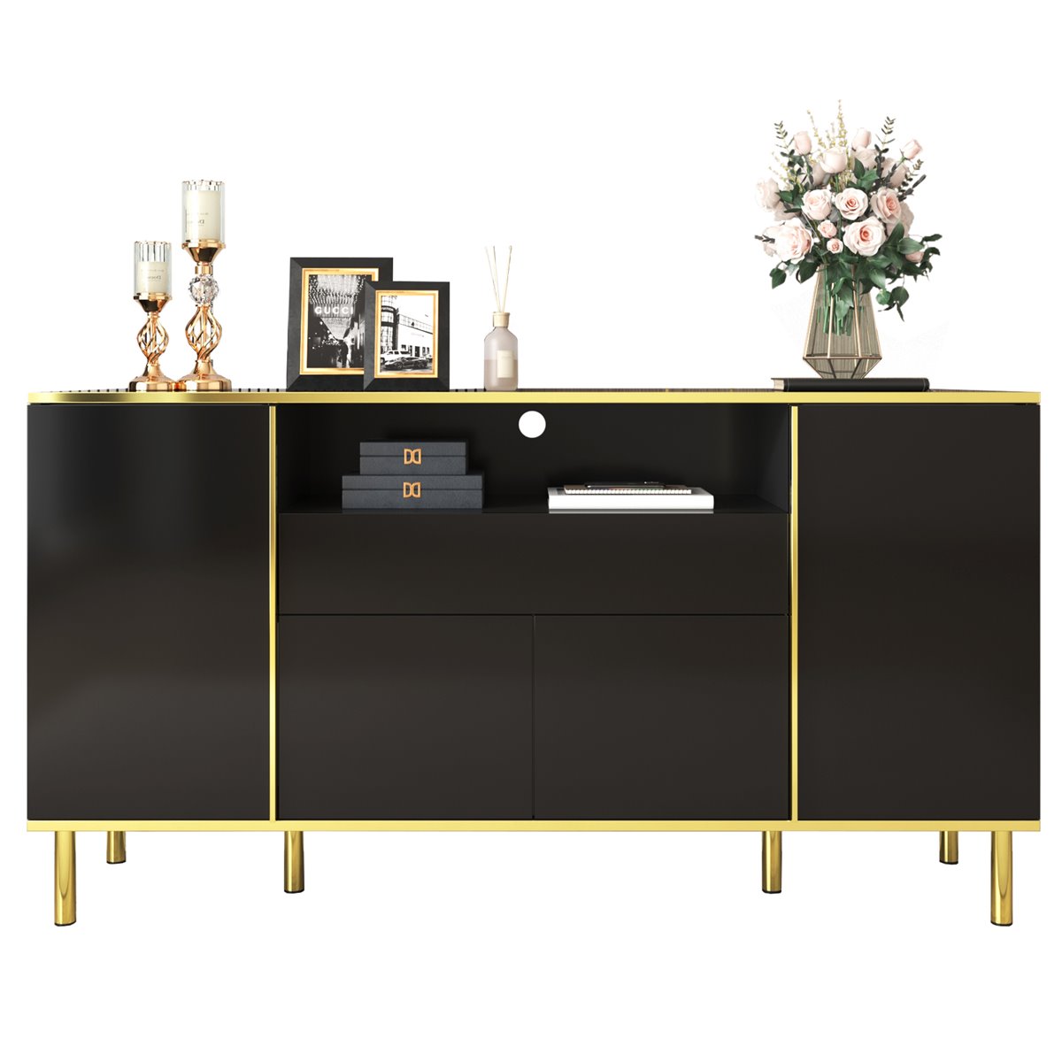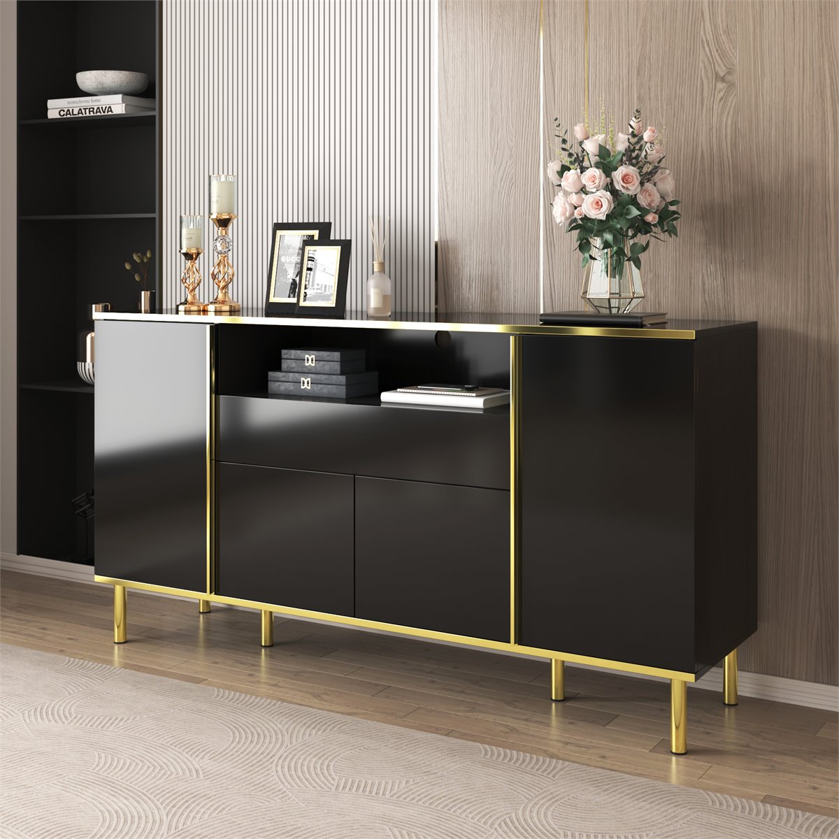 - Combinación perfecta de funcionalidad y estilo con 4 puertas, 1 cajón y un amplio compartimento.