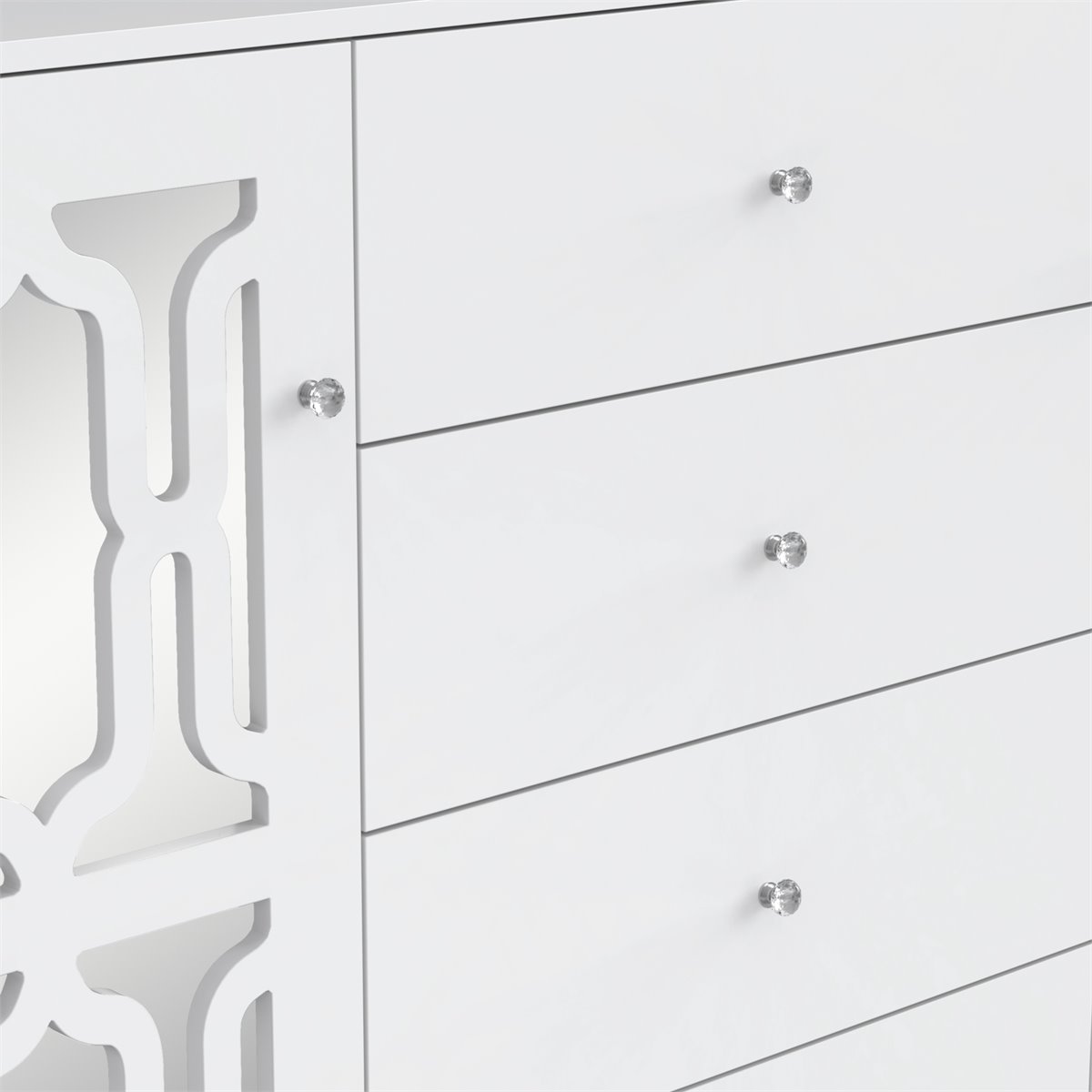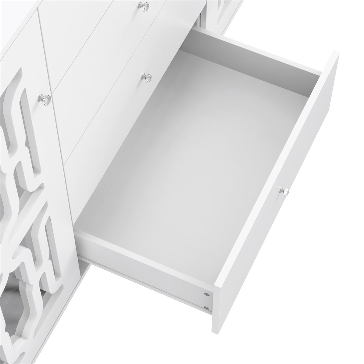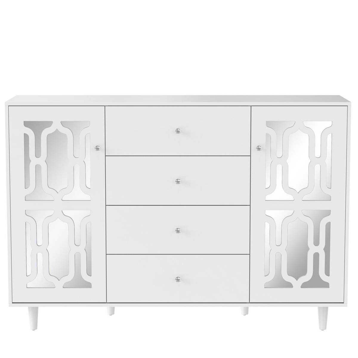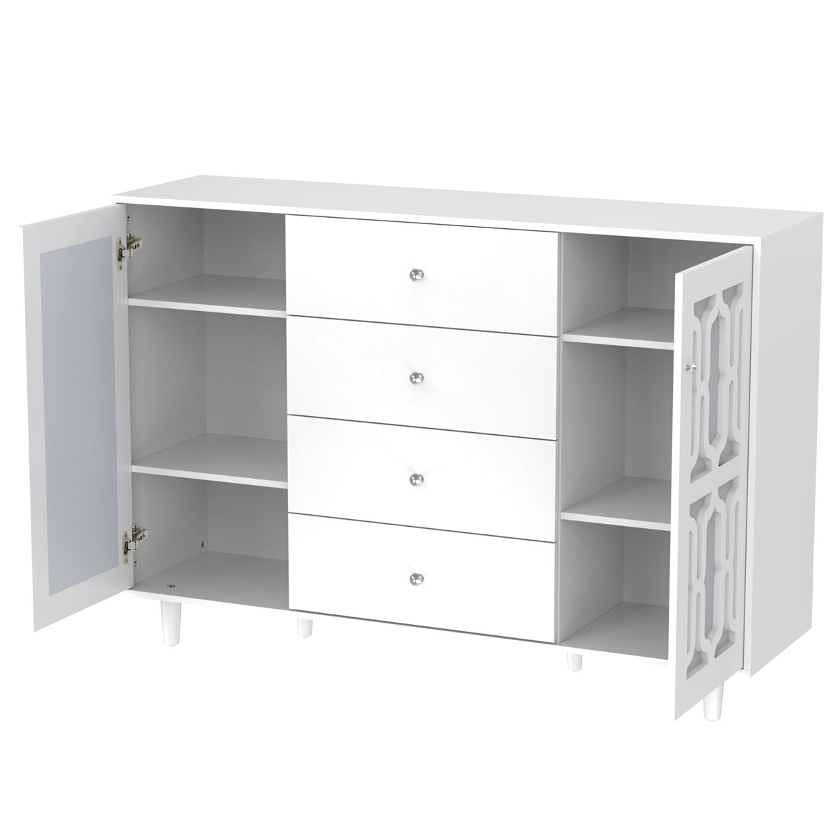 Aparador bajo - 2 puertas y 4 cajones - tirador de cristal - Blanco
